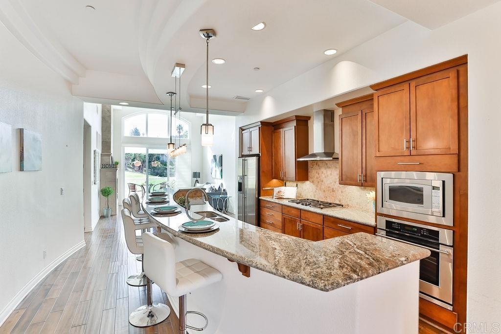 Welcome to your Southern California lifestyle in this home with the La Costa golf course and nearby local beaches!!! Spectacular golf course views on the 3rd fairway with ocean breezes blowing through this exquisite La Costa top floor condo. The finishes are nothing short of top of the line, with a gourmet kitchen, granite, custom cabinets, and high end appliances. Custom engineered wood flooring in the common areas, contemporary ceilings and base moldings, fireplace, open floor concept which is light and bright, a spacious master suite with a soaking tub, custom wood shutters, two balconies, a bonus room to use for an office or den, bar area with a built in wine refrigerator, enjoy indoor-outdoor living from the main balcony with your direct views of the golf course, the 3rd hole and the coastal sunsets! This home is a stones throw from the top tier shopping, dining and the local beaches. The location and everything with it is San Diego coastal living at its best! Who wouldn't want to live here?!