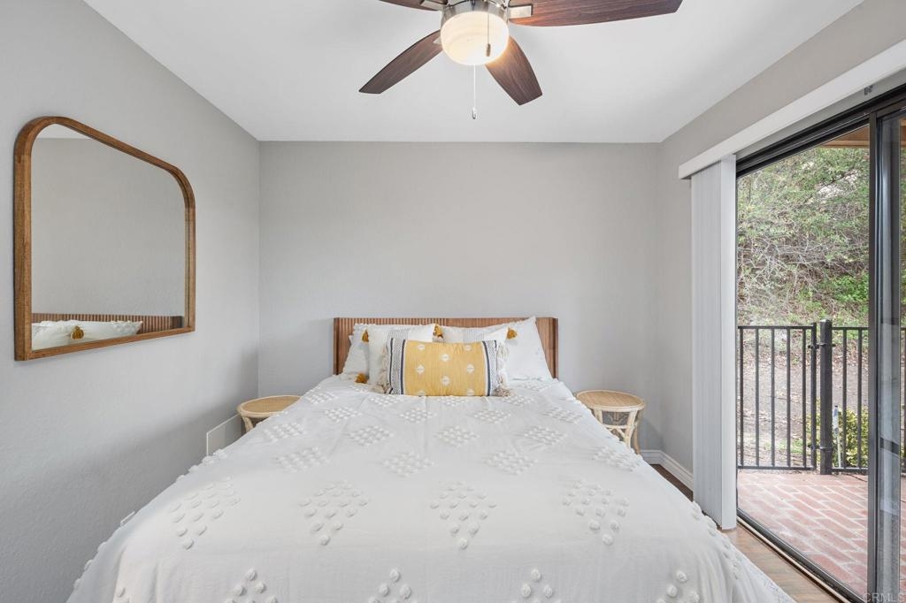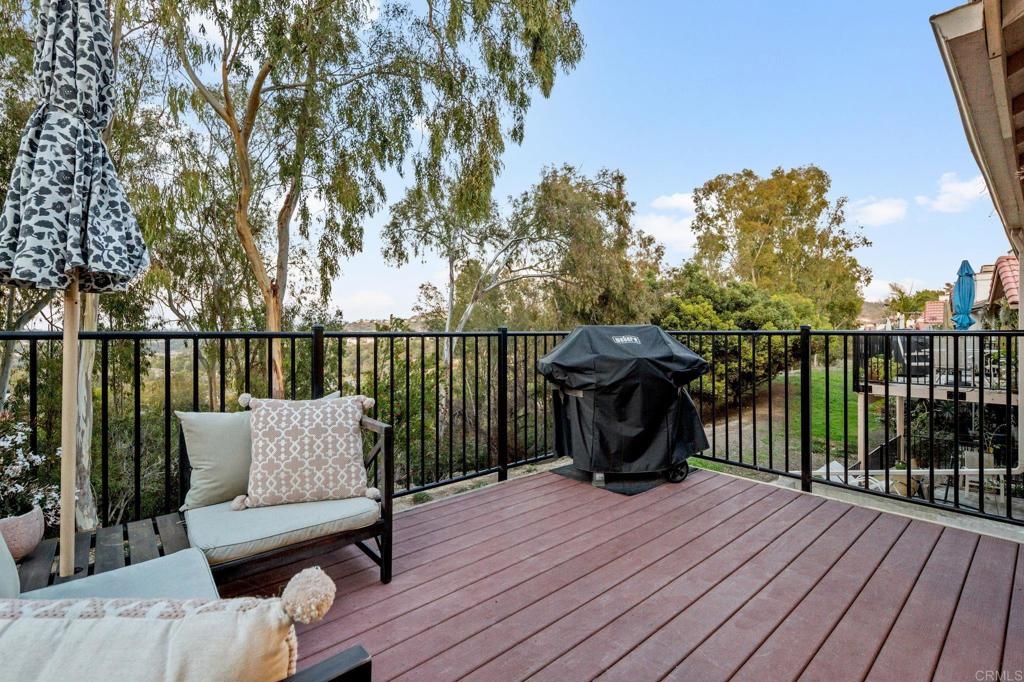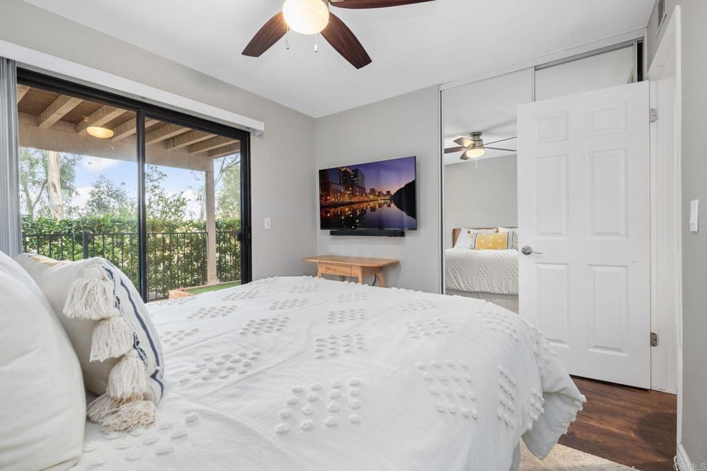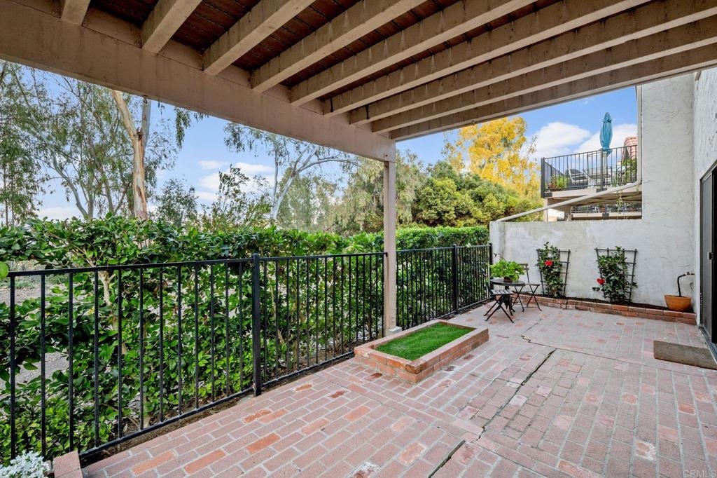 Nestled at the end of a tranquil cul-de-sac and embraced by lush green belts and mature trees, this private end-unit offers breathtaking views and unparalleled privacy. Every detail has been meticulously attended to in this beautifully maintained home. The interior boasts white shaker cabinets, recessed lighting, quartz countertops, stainless steel appliances, and laminate flooring throughout. Custom tile showers, an open floorplan and baseboards enhance the home's modern appeal. Enjoy entertaining on the spacious second-floor patio, or step out from the master and second bedrooms onto an extended lower patio, perfect for soaking in the serene surroundings. Property comes with huge storage unit for any extra space needed. The community features two pools with spas, two tennis courts, expansive open green spaces, and mature trees, offering a resort-like lifestyle. This turnkey home combines modern upgrades with tranquil views, making it a must-see!