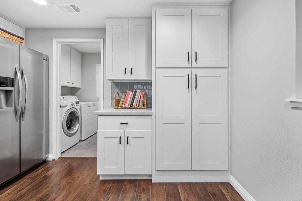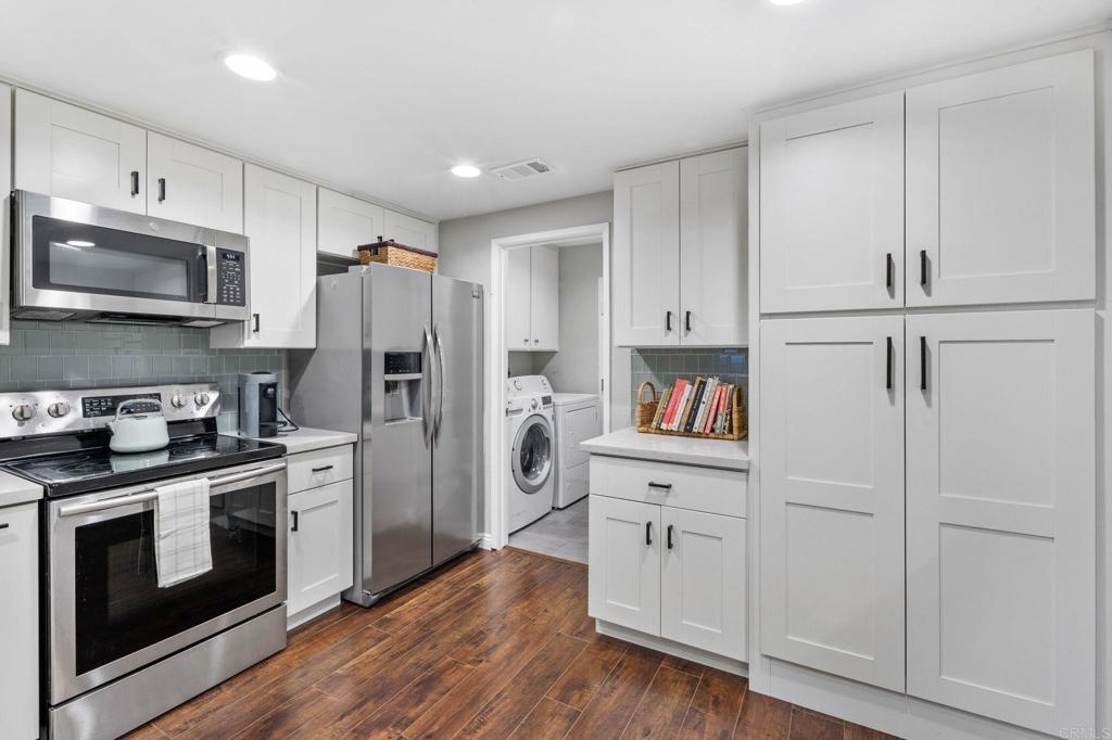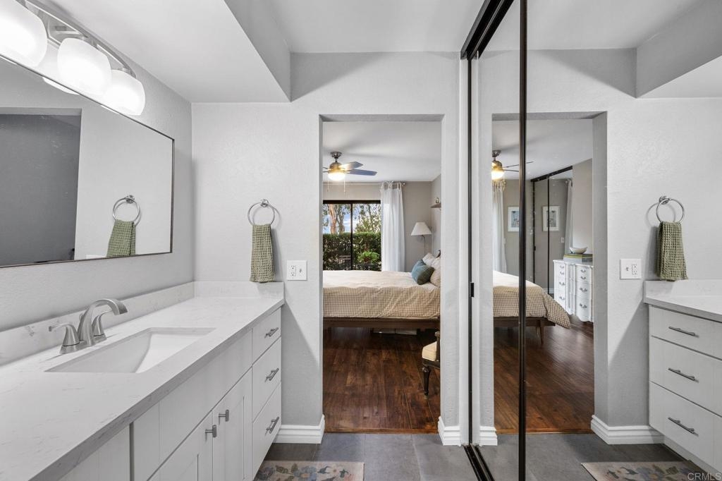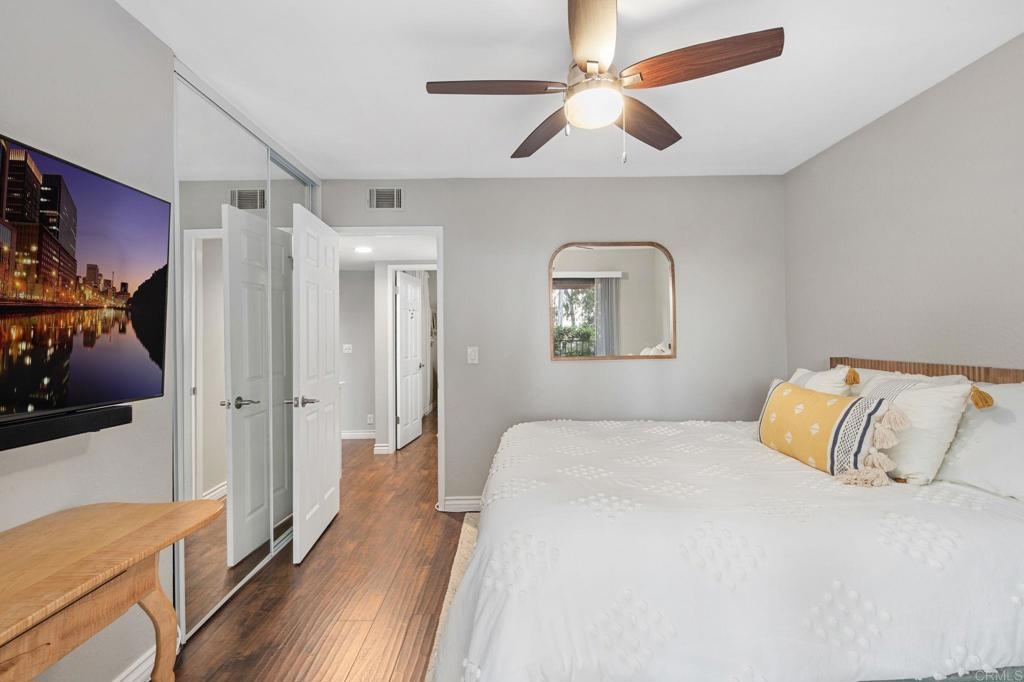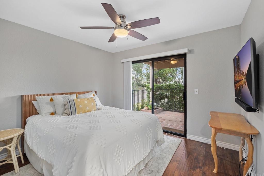 Nestled at the end of a tranquil cul-de-sac and embraced by lush green belts and mature trees, this private end-unit offers breathtaking views and unparalleled privacy. Every detail has been meticulously attended to in this beautifully maintained home. The interior boasts white shaker cabinets, recessed lighting, quartz countertops, stainless steel appliances, and laminate flooring throughout. Custom tile showers, an open floorplan and baseboards enhance the home's modern appeal. Enjoy entertaining on the spacious second-floor patio, or step out from the master and second bedrooms onto an extended lower patio, perfect for soaking in the serene surroundings. Property comes with huge storage unit for any extra space needed. The community features two pools with spas, two tennis courts, expansive open green spaces, and mature trees, offering a resort-like lifestyle. This turnkey home combines modern upgrades with tranquil views, making it a must-see!
