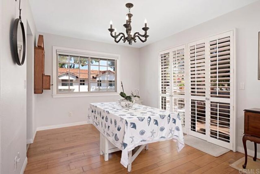 Updated La Costa condo in the quaint community of Meadowridge. This is a single level home above the garages with no common walls. Remodeled kitchen with shaker cabinets, soft closing drawers and cabinets, quartz counter tops and a convection oven that does more than your average oven. IT'S AMAZING!!! Plantation shutters, newer windows, and hardwood floors throughout. Primary and secondary bathrooms are updated with granite counters, jacuzzi tub and tile flooring. Large storage area, 22' x 5', great for bikes, surfboards, and seasonal decorations. Community amenities include pools, spas, tennis courts, and lots of grass areas. Close to La Costa Meadows Elementary and Bressi Ranch shopping center.