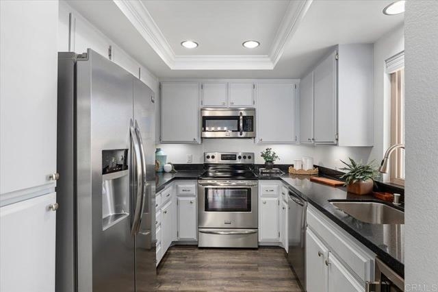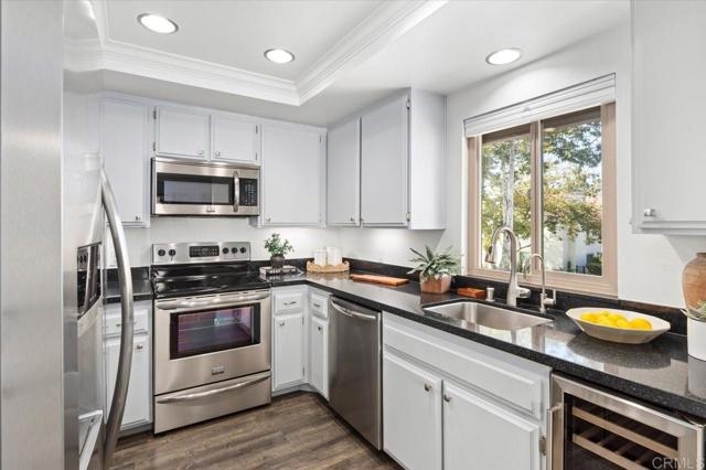 Beautifully Updated Townhome in La Costa! This light-filled 2-bedroom, 2-bath corner unit offers a thoughtfully designed floor plan that blends comfort, convenience, and style. The bright and airy living area features breathtaking mountain views and opens to a spacious balcony—perfect for entertaining or enjoying your morning coffee or evening glass of wine. The primary suite includes an ensuite bathroom and is large enough to accommodate a sitting area or home office setup, complete with built-in closets and custom shades. The updated kitchen boasts sleek stainless-steel appliances, a brand-new wine refrigerator, and ample storage. Additional upgrades include dual-pane windows and sliders with shutters, central air conditioning with a Honeywell Smart thermostat? and 2 sets of Bluetooth ceiling speakers. In-unit laundry closet with a full-size washer and dryer. Highlights continue with an attached one-car garage featuring newly finished epoxy flooring and extra storage space. Additional parking includes a reserved space and a private driveway. A newly remodeled 20’ x 5’ storage room beneath the property offers exceptional space for all your storage needs. Residents enjoy resort-style amenities, including two sparkling pools, spas, barbecue area and tennis courts. Ideally located minutes from shopping, dining, beaches, golf courses, the library, movie theaters, Omni La Costa Resort, Bressi Ranch, Palomar Airport, and more. Within a highly rated school district, this home presents an outstanding opportunity to live in the desirable La Costa community.