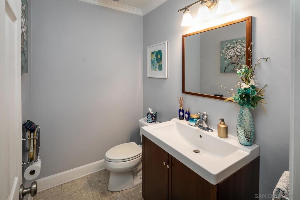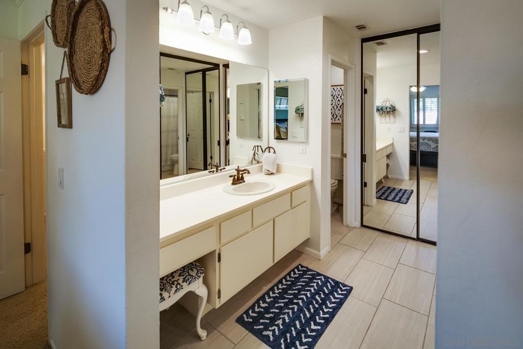 Rarely available model in the highly desirable La Costa Meadowridge community. Located on a lovely cul-de-sac backing up to a green belt high on a hill above other neighbors, this home boasts a full-size driveway, and a private, serene backyard patio. Just steps from a large community open space, pool, spa & tennis courts. Dual pane windows and sliding door, newer HVAC system with furnace and A/C, ceiling fans in every room, upgraded appliances and granite countertops and beautiful floors make this a move in ready must see home! Equipment: Garage Door Opener Sewer: Sewer Connected Topography: LL