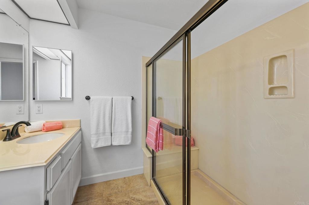 Welcome to this light and bright updated townhome in the heart of La Costa, complete with dual primary suites! This 2-bedroom, 2.5-bath home features vaulted ceilings, an open layout, and an attached 2-car garage with laundry and plenty of storage. Recent updates include a brand-new energy-efficient AC and furnace, fresh paint throughout, new luxury vinyl plank flooring downstairs, and new carpet in the bedrooms. Step outside to a spacious private deck, ideal for outdoor dining and enjoying the sunshine. Your new home is tucked away in a quiet part of the community, with green space right outside your door. A perfect fit for first-time buyers, those looking to downsize or anyone looking to enjoy the vibrant La Costa community. Monarch Villas is a gated community with a pool, spa, and tennis/pickleball courts. Just minutes to the beach, golf, shopping, great restaurants, La Costa Resort & Spa, and top-rated Encinitas and San Dieguito schools. Don’t miss this adorable home in a fantastic location!