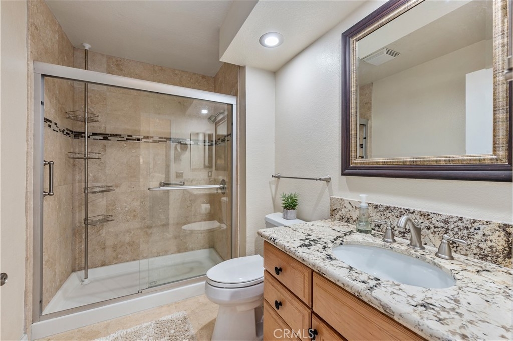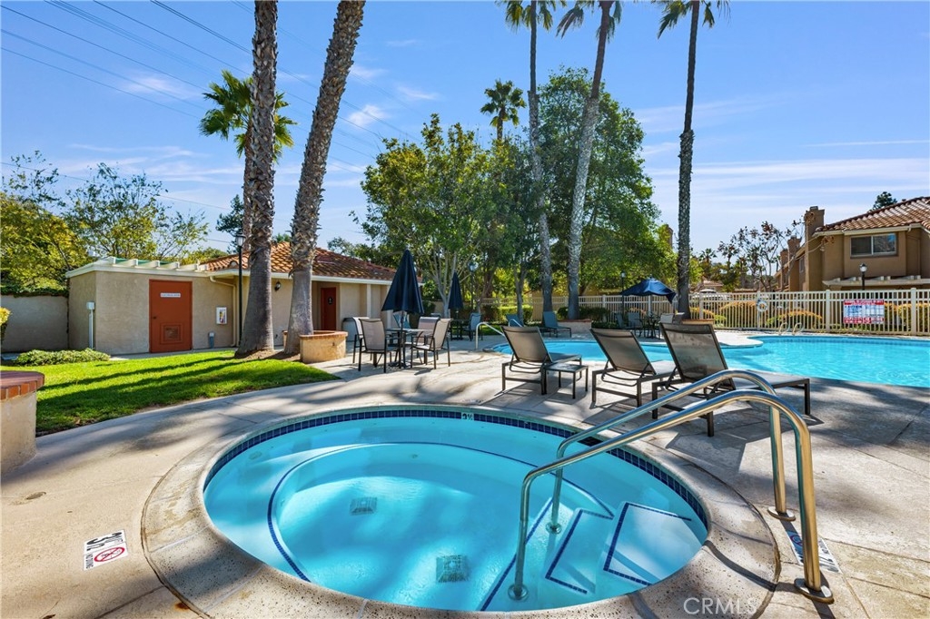 Welcome to this beautifully updated turnkey La Costa town-home, nestled in the highly desirable gated Monarch Villas community. Located just moments from Gelson's, Equinox, and the stunning beaches, this home offers the perfect blend of comfort, convenience, and coastal living. Inside, you'll find dual master suites, each featuring soaring vaulted ceilings, ceiling fans, and private en-suite bathrooms—ideal for relaxation and privacy. The updated kitchens and bathrooms are equipped with elegant granite countertops, and beautiful tile flooring. The brand-new waterproof Luxury Vinyl Plank laminate flooring in the living area adds a stylish touch throughout. The spacious living area is highlighted by a striking gas fireplace, surrounded by exquisite floor-to-ceiling travertine, providing a warm, inviting atmosphere. Pella dual-pane windows with white plantation shutters flood the home with natural light while maintaining privacy. The generously sized, finished 2-car attached garage boasts plenty of storage space, an LG washer and dryer, and a utility sink. Additional updates include a newer Rheem air conditioner and water heater, ensuring comfort and efficiency year-round. Step outside through the dining area sliding glass door to the large private patio, perfect for outdoor dining or simply enjoying the serene surroundings. This unit faces tranquil walking trails, adding to the sense of privacy and peace. The Monarch Villas community offers gated access for added security, along with amenities such as a tennis/pickle ball court, a pool, and a spa, perfect for relaxing and enjoying the Southern California weather. Plus, with the acclaimed Encinitas Union and San Dieguito Union school districts nearby, this home is ideally situated for convenience. Don’t miss the chance to experience this incredible property in a prime location—welcome home!