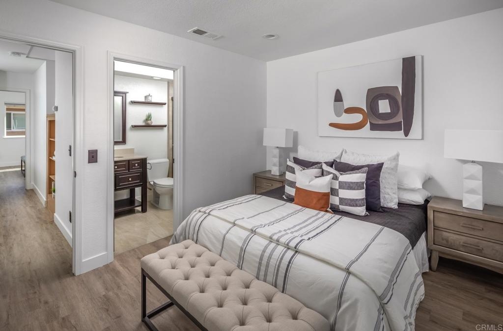 Welcome to this meticulously remodeled 2-bed, 2.5-bath condo, ideally situated in the vibrant heart of La Costa. The exceptional home boasts dual primary suites for maximum comfort and privacy. You'll be immediately captivated by the modern updates throughout, including LVP floors, remodeled baths, and SS appliances. Convenience is key with this property, as it features a finished and attached garage complete with ample storage space and private laundry. Enjoy the beautifully maintained gated community, offering a pool, a spa, tennis courts, and more! This prime location is just around the corner from the brand The Beacon La Costa shopping center, featuring Equinox, all new restaurants, shops, coffee, and more! Easy access to the I-5 freeway, world-class golf courses, theaters, sandy beaches, and top-tier schools.