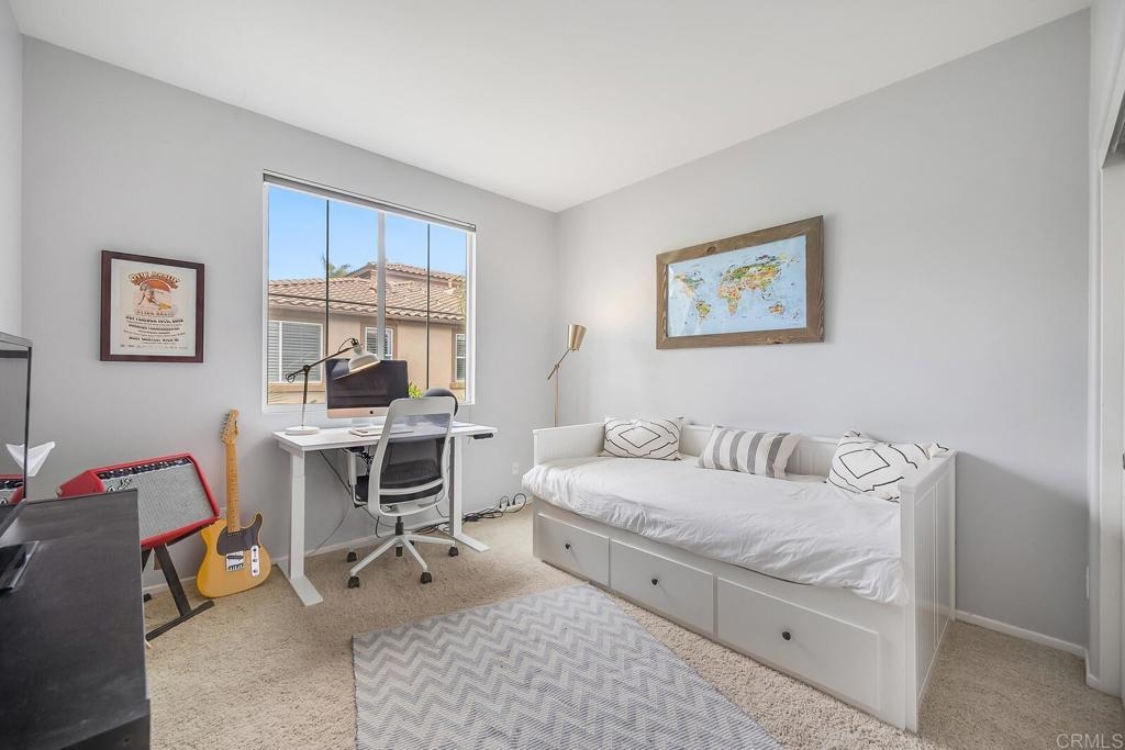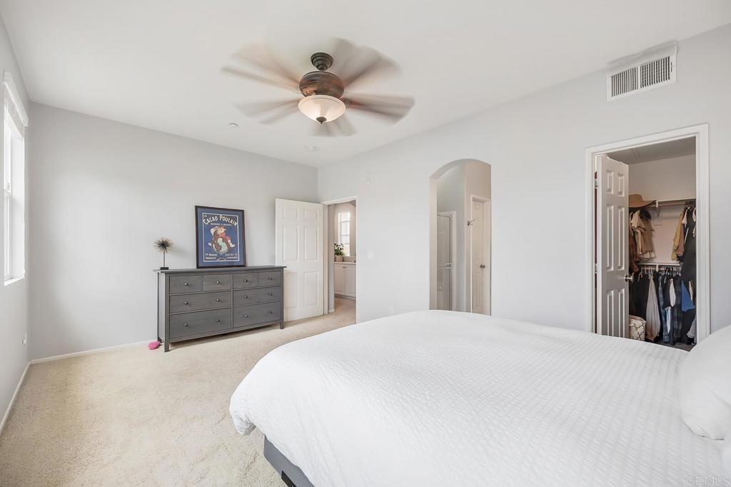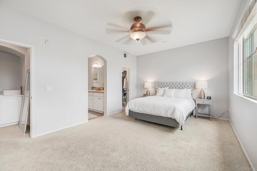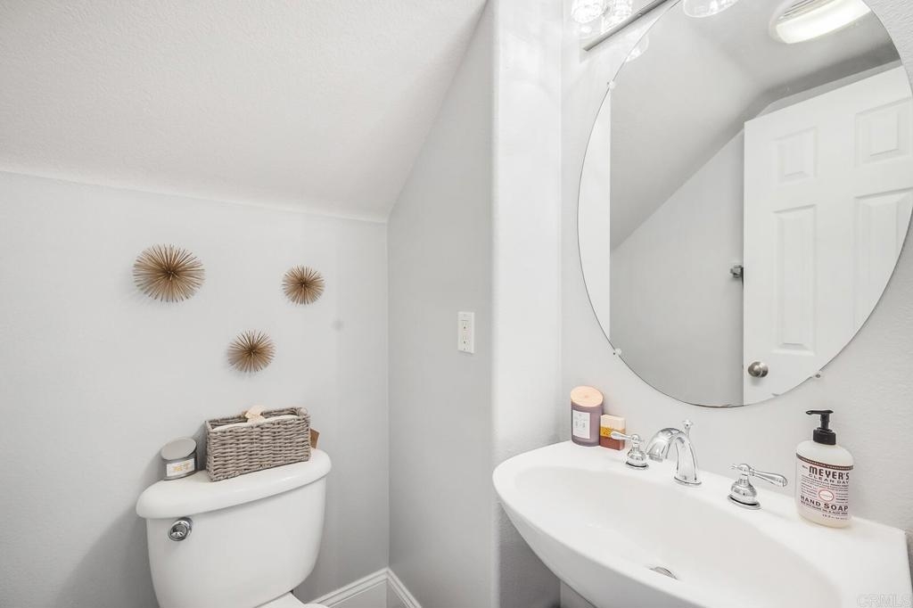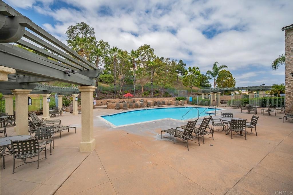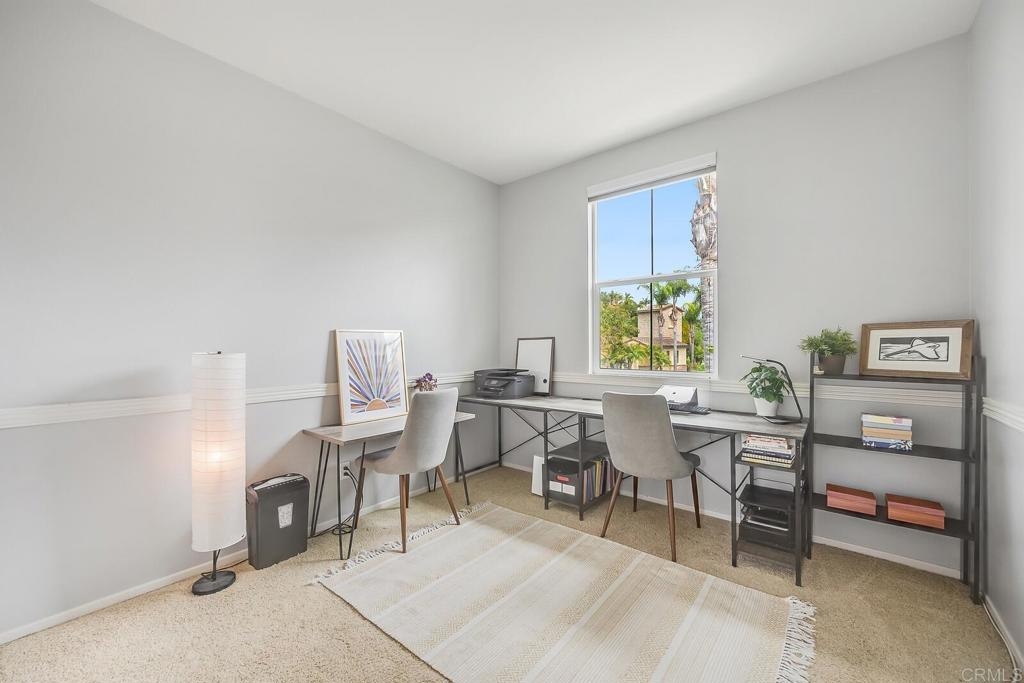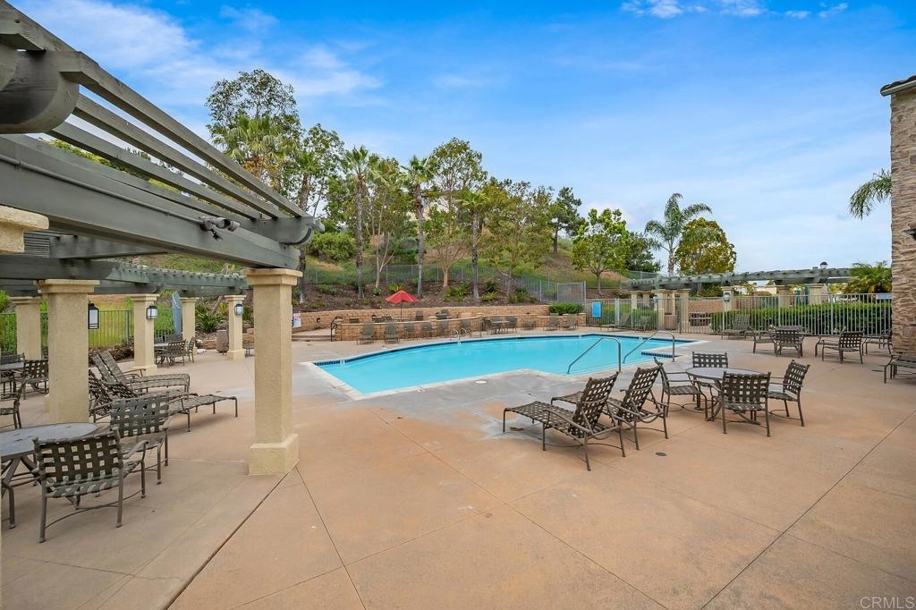 This beautifully maintained townhome is nestled in a quiet cul-de-sac within the highly desirable Mystic Point community, offering a rare combination of privacy, convenience, and scenic surroundings. With an open view and a private path leading directly to the community pool, it’s a serene retreat just minutes from the beach. Inside, a welcoming living room showcases warm hardwood floors, high baseboards, a gas fireplace, and thoughtful touches like a ceiling fan and window blinds. The updated kitchen features granite countertops, stainless steel appliances, and crisp white cabinetry—offering both modern style and everyday functionality. Upstairs, the spacious primary bedroom boasts a ceiling fan, peekaboo canyon views, and window blinds for added comfort. Both bathrooms are well-appointed with dual sinks and combined shower/tubs, while additional hallway cabinets provide extra storage. A rare highlight of this home is the pair of oversized, separate garages—offering increased wall space and storage capacity. Each garage includes epoxy flooring, painted walls, built-in cabinetry, and overhead storage. One garage has access to the backyard. The private yard and patio are beautifully landscaped and designed for easy maintenance, featuring a peaceful open view with a palm tree backdrop—without the upkeep. The patio includes a drainage system (a rare upgrade in the community), and the white vinyl fencing was replaced in September 2023. This home is the perfect blend of comfort, function, and location—ideal for those seeking to enjoy the best of Carlsbad living.