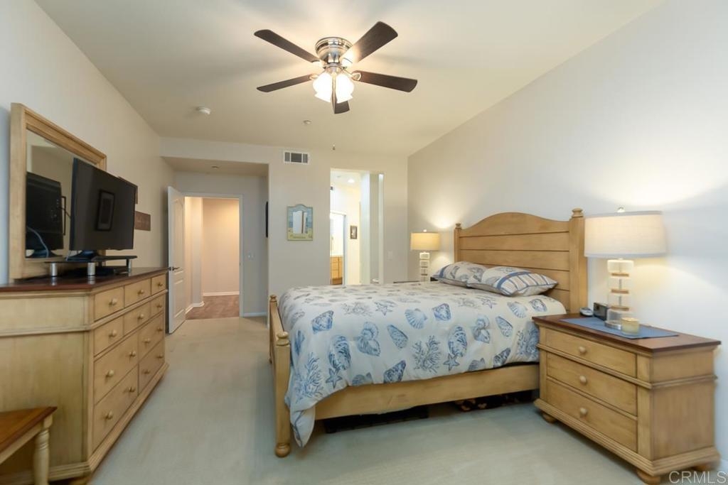 Immaculate Condo West of I-5 with Ocean/Lagoon views from your Family room and balcony. Enjoy Resort type Living in the prestigious gated community of Ocean Pointe in Carlsbad. This property features Beautifully maintained common grounds, walking trails on the lagoon, Pool, Spas, BBQ areas and a breathtaking Ocean View! Two Large bedrooms, two full baths. A Large Kitchen, separate dining room and family room. Enjoy the Ocean/Lagoon view and coastal breeze from your private balcony adjacent to the family room and Master bedroom. Beautiful engineered wood floors in the entry, hallway, bathrooms and kitchen, and neutral colored carpet in the bedroom and family room. Carlsbad Village is just blocks away as well as famous Tamarack Beach. Convenient, Full sized indoor Laundry closet with hook ups, elevator access from the underground parking and storage closet, to your front door. Come and see this Turnkey condo, and what Coastal living can offer you!