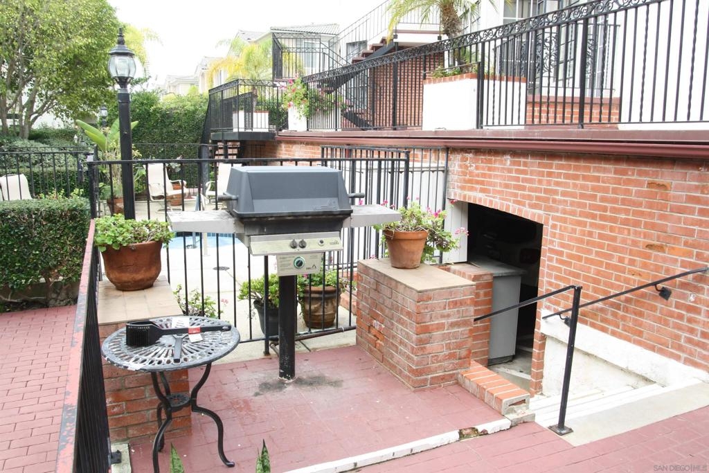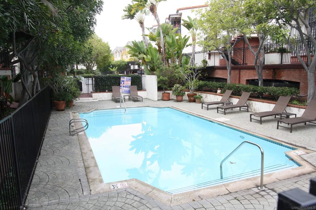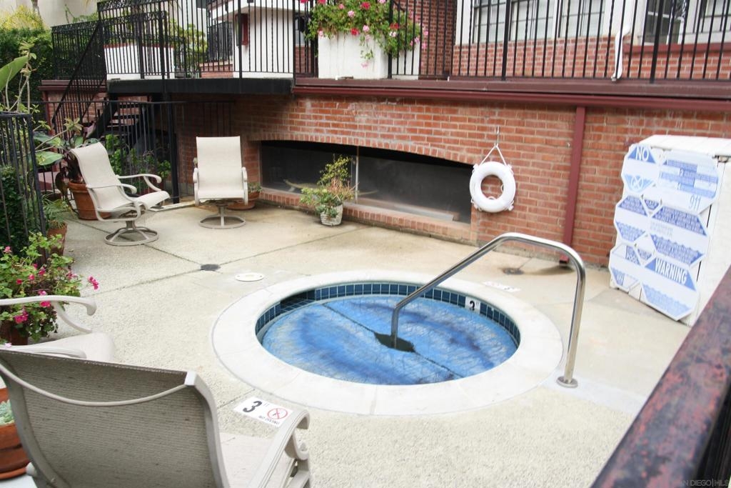 Wonderful end unit with lots of natural light. Tile entry that flows into kitchen and hallway. Carpet in living room and bedroom. Step down living room with high ceilings. Fireplace in living room. Stacked clothes washer/dryer in closet. Intricate lacy wrought iron fences and ornamentation, the brick paths, and lovely foliage truly make you feel like you've stepped into another world! Assigned parking space in underground parking lot. Community pool, spa and BBQ. Central AC & Heat. Take advantage to customize the property the way you would like. Complex Features: ,,,, Sewer: Sewer Connected Topography: LL