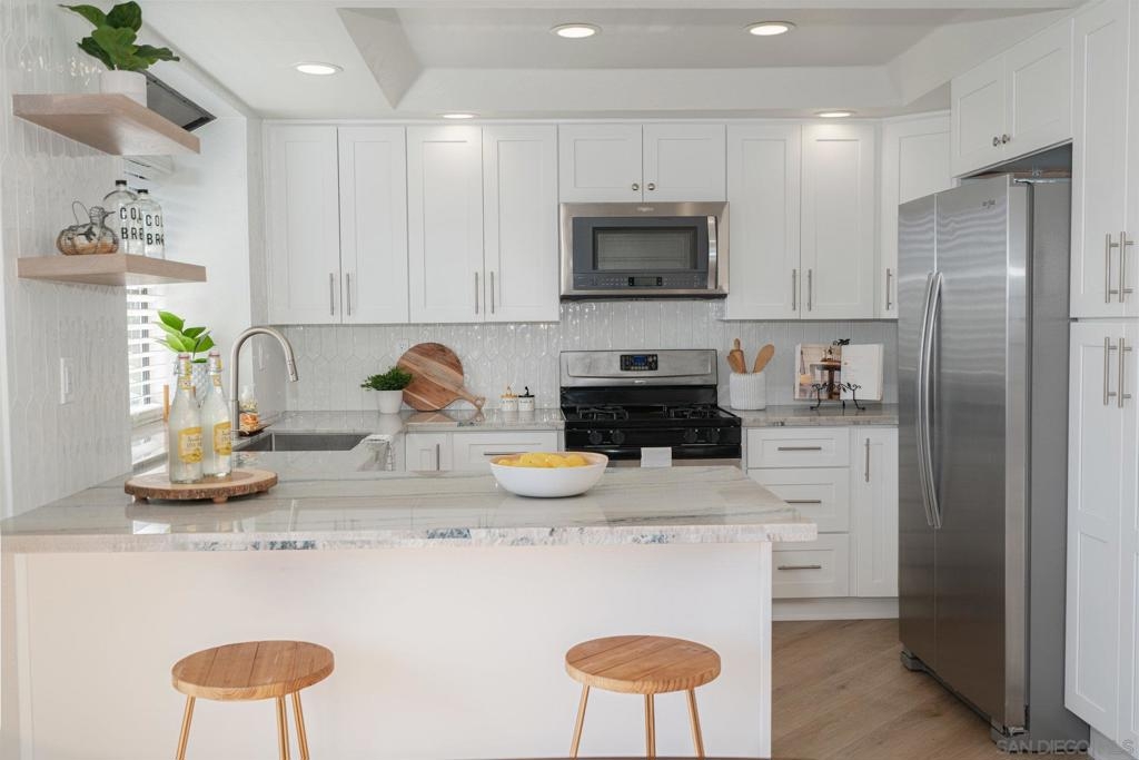 STUNNING HOME!!! Discover the epitome of coastal serenity in this impeccably upgraded 2bd/2bth home. This 2nd-floor retreat captures both ocean breezes and stunning sunset views, offering a lifestyle of both comfort and beauty. Step into modern luxury with a beautifully fully upgraded kitchen and masterbath that showcases high-end solid wood cabinets with soft-close hardware, complemented by the stunning Aquarella Quartzite premium natural stone counters. The elegance continues with modern white oak open shelving, while the masterbath exudes designer sophistication with walk-in shower encapsulates opulence and comfort. Every detail has been meticulously chosen to provide an experience of luxury within your own home. As you explore further, you'll find Minka Aire fans gracing the bedroom, adding both comfort and style. The Dura Lux waterproof LVP flooring throughout, seamlessly ties together the main area and bedroom, enhancing the sense of flow and unity in this exquisite home. The living area is a true haven, featuring a cozy fireplace that invites relaxation on cooler evenings. This space effortlessly connects to a private balcony, offering a serene retreat for unwinding or hosting gatherings while while basking in the beauty of the sunset. Convenience merges with luxury as the home provides a detached one-car garage & additional parking spot, ensuring ample space for your vehicles. As a bonus, the community offers a pool & spa. Enjoy a sought-after location near top-rated schools, renowned golf courses, and the vibrant ambiance of nearby cafes, restaurants, and bars.