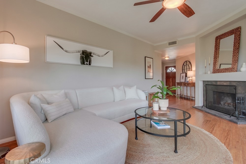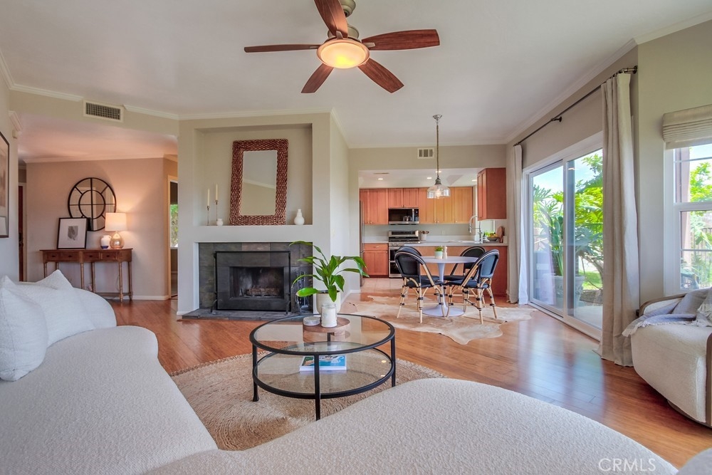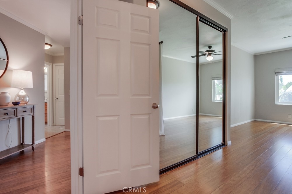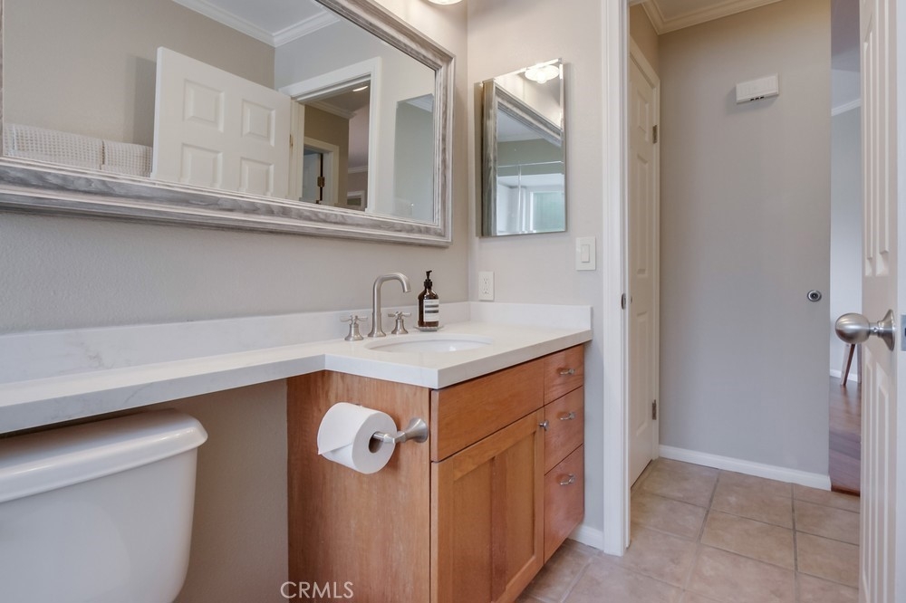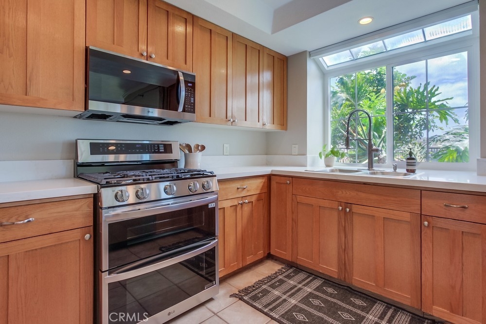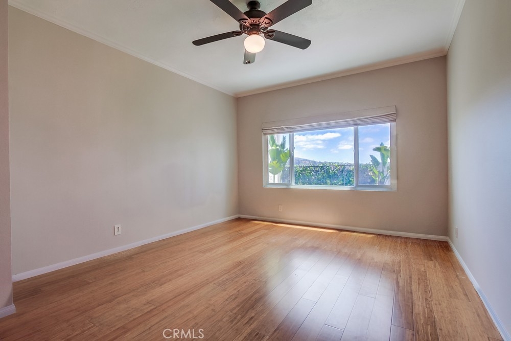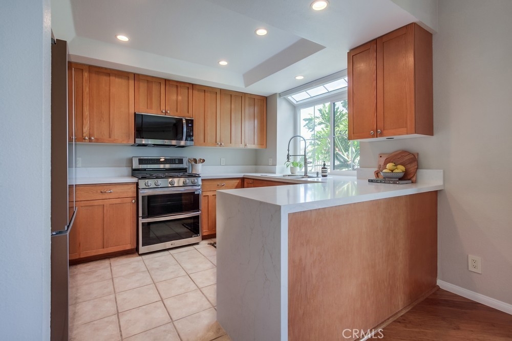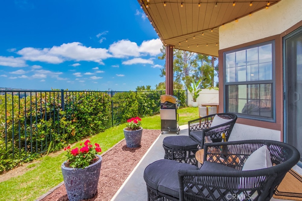 PANORAMIC VIEWS. This 2 bedroom 2 bathroom single story La Costa condo boasts unobstructed panoramic views of a beautiful valley above La Costa Golf Course and Black Mountain as far as 25 miles away. Enjoy San Diego weather at its finest with a double sided patio, green belt and mature landscape surrounding the unit. Situated as an entry level-end unit with maximum privacy, the condo features 10 ft ceilings and spacious views from all living windows and master bedroom. Hardwood floors, brand new quartz countertops, and brand new LG appliances including a freestanding double oven. Custom soft-close closet inserts in both bedrooms, custom window coverings and snap lock design windows. Single car garage with storage loft right outside of unit with an additional assigned uncovered parking space & 2 guest passes for community parking. Enjoy the Plaza Paseo Real with a grocery store, restaurants, & Cinepolis just across the street or take a short drive to the Batiquitos Lagoon trail and Gandview Beach.