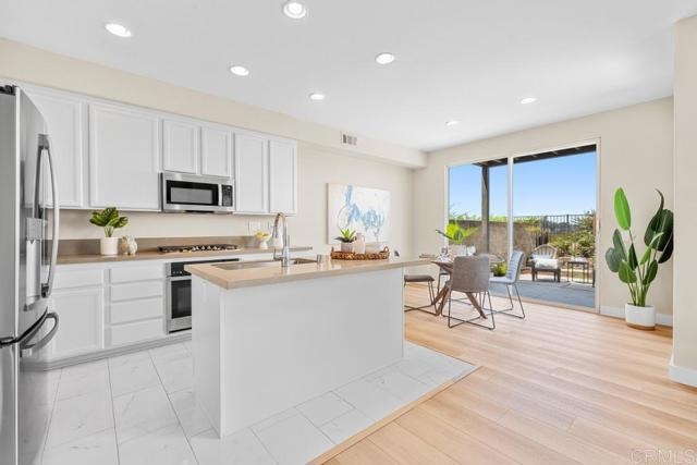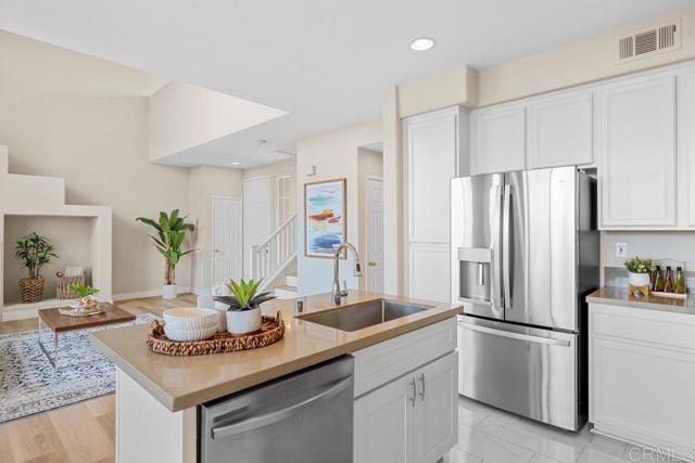 Prepared to be dazzled as you step into this exquisite townhome nestled within the exclusive gated community of Poinsettia Heights. Meticulously renovated, this stunning property features 2 bedrooms+office, 2.5 baths, and 1545 square feet of living space. The home has been freshly painted with new vinyl plank flooring and baseboards throughout. As you enter, enjoy the grandeur of the spacious living area, bathed in natural light that creates an ambiance of warmth and elegance. The seamless open floor plan effortlessly connects the living room to the dining area, offering the perfect setting for entertaining guests or unwinding in tranquility. Indulge your inner chef in the gourmet kitchen, complete with state-of-the-art appliances, abundant cabinet space, new kitchen countertops, and a brand new island for casual dining. Upstairs, two generously proportioned bedrooms await, providing unparalleled convenience and privacy. The upstairs loft area presents a versatile space ideal for a home office, personal fitness area, or potential conversion into a 3rd bedroom. Positioned in one of the most coveted locations within the complex, this home offers breathtaking canyon views, inviting you to revel in the splendor of nature. Outside, a private patio beckons as a tranquil sanctuary for enjoying the delightful Carlsbad climate or hosting sophisticated outdoor gatherings. Additionally, the property includes a 2-car attached garage and a separate laundry room seamlessly integrating convenience and practicality. Situated in close proximity to an array of upscale dining, shopping, and entertainment options, this home epitomizes the perfect fusion of comfort and convenience. With its enviable location, this property is an absolute must-see for those seeking a stylish yet low-maintenance lifestyle in Carlsbad, CA. Schedule your exclusive tour today and immerse yourself in all that this exceptional townhouse has to offer!