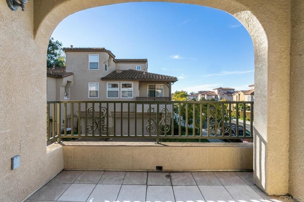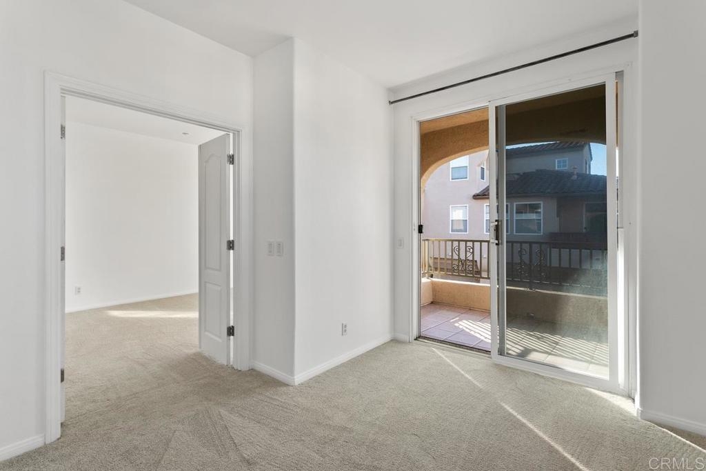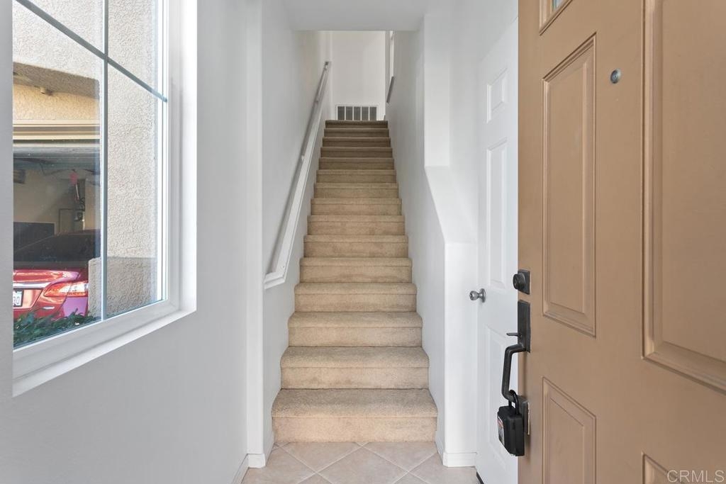 Highly desirable and rare to the market townhome in the gated community of Portico in Rancho Carrillo. Two bedrooms and two full baths with an enclosed den which can be used as a third bedroom. Lots of natural light with most windows facing west and a peek-a-boo ocean view from the master bedroom. Vaulted ceilings, white cabinets, walls and brand new carpet make this property inviting and move-in ready. Real wood floors on the stairs and top floor bedrooms. The living area is two stories located above the attached two car garage. End-unit and only one shared wall. The master planned community of Rancho Carrillo features a Clubhouse, swim center, BBQ area and miles of hiking trails. Portico also has its own private pool and spa. Award winning Carlsbad and San Marcos schools.