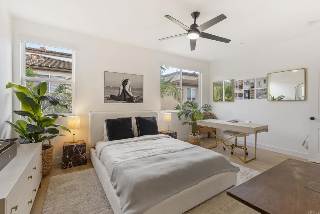 Welcome to Portico at Rancho Carrillo—a highly upgraded, turn-key home in one of Carlsbad’s most desirable gated communities! This stylish 3-bed, 2.5-bath home has been completely renovated from top to bottom and is truly move-in ready. Step inside and fall in love with the bright, open floor plan—perfect for entertaining or relaxing. The modern kitchen features stainless steel appliances, quartz countertops, chic cabinetry, and under-cabinet lighting that gives it that designer touch. Enjoy the convenience of a private yard, central AC, and an attached split 2-car garage. Upstairs, all three bedrooms offer comfort and privacy and have new installed California Closets organizational solutions. The spacious primary suite feels like a boutique hotel with a walk-in tile shower, dual-sink vanity, elegant lighting, and a spacious walk-in closet. The secondary bedrooms share a beautifully updated bathroom with a dual vanity—ideal for guests, kids, or roommates. Additional highlights include new upstairs window blinds, VA approved and low HOA. Homes like this don’t last—especially in Rancho Carrillo. See it. Love it. Own it. Living in Rancho Carrillo means access to incredible resort-style amenities: two sparkling community pools, one within Portico and the other at the Rancho Carrillo Swim Center, walking and running trails, and close proximity to top-rated schools, Omni La Costa, Alga Norte Park, Leo Carrillo Ranch, shopping, dining, golf, and Carlsbad’s amazing beaches. Discover why this upgraded, modern home is the perfect blend of style, convenience, and Carlsbad coastal living!