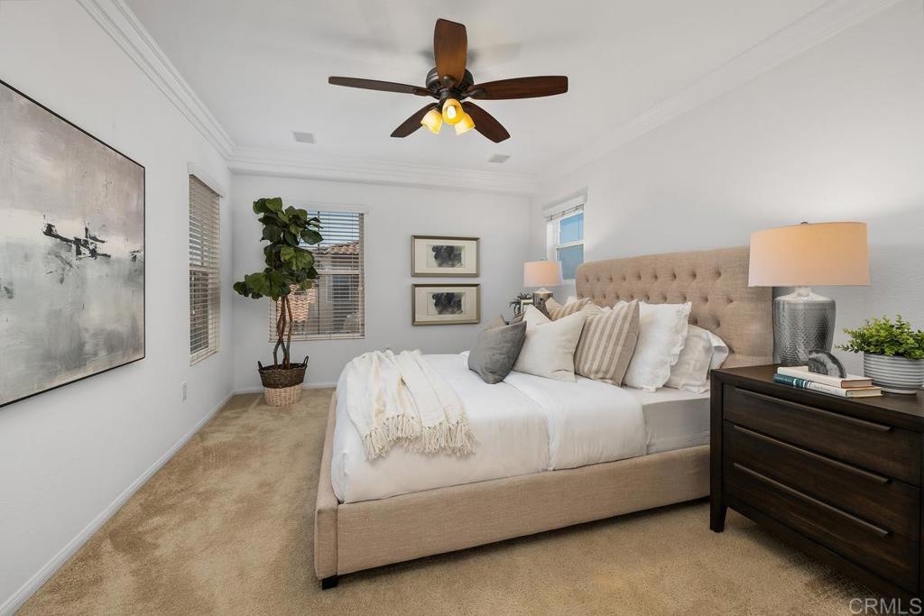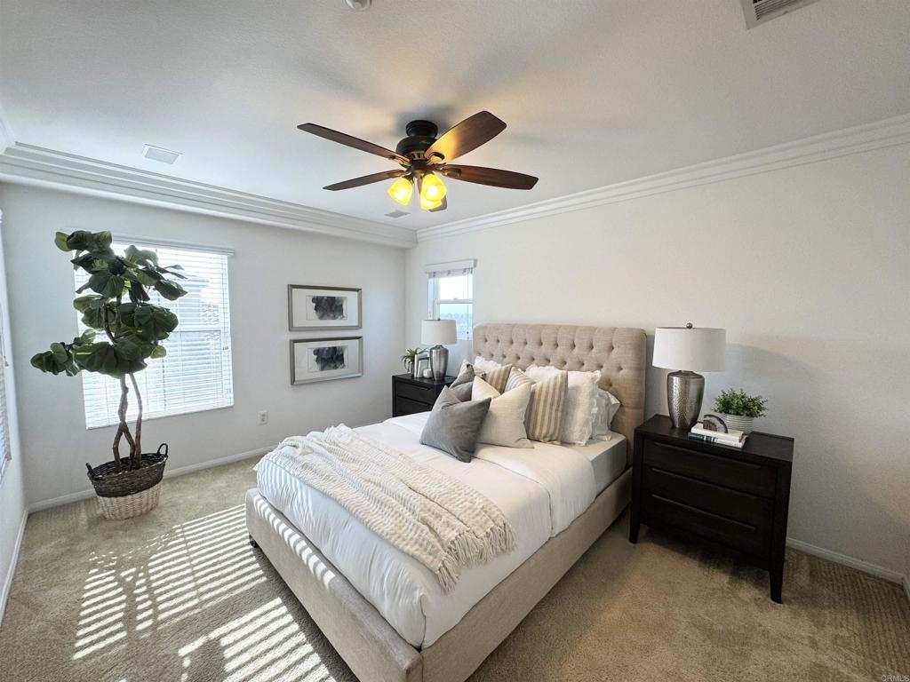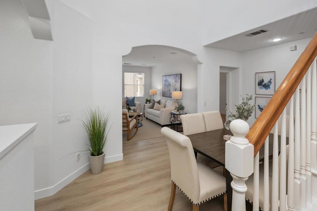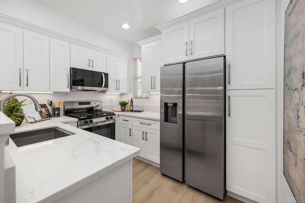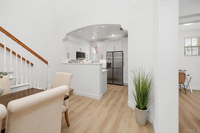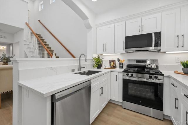 Back on the market: No fault of the seller. Discover this beautifully upgraded tri-level townhouse located in the highly sought-after gated community of Rancho Carrillo Portico in Carlsbad! This spacious 2-bedroom, 2-bathroom home offers 1,338 SF of open-concept living, complete with soaring vaulted ceilings and large windows that flood the space with natural light. Step inside to find brand new luxury vinyl plank flooring throughout the main living areas. The stunning, remodeled kitchen features modern shaker-style cabinetry, elegant quartz countertops, and stainless steel appliances. A versatile loft on the 2nd floor provides the ideal space for a home office, den, or nursery and opens to a charming private balcony. The top-floor primary suite includes a walk-in closet, a new dual-sink vanity with quartz countertops, and a generously sized soaking tub. Residents enjoy private access to resort-style community amenities, including pools, spas, BBQ areas, a playground, and more! Located within a top-rated school district and just minutes from scenic hiking trails, shopping centers, restaurants, beaches, and major freeways. Don't miss your chance to own in one of Carlsbad’s most desirable neighborhoods. Schedule your tour today!