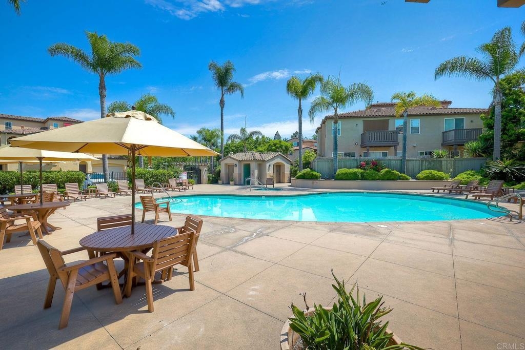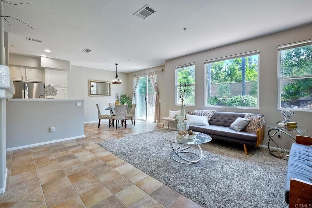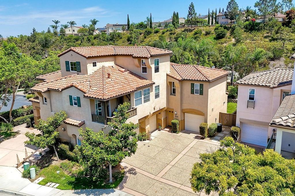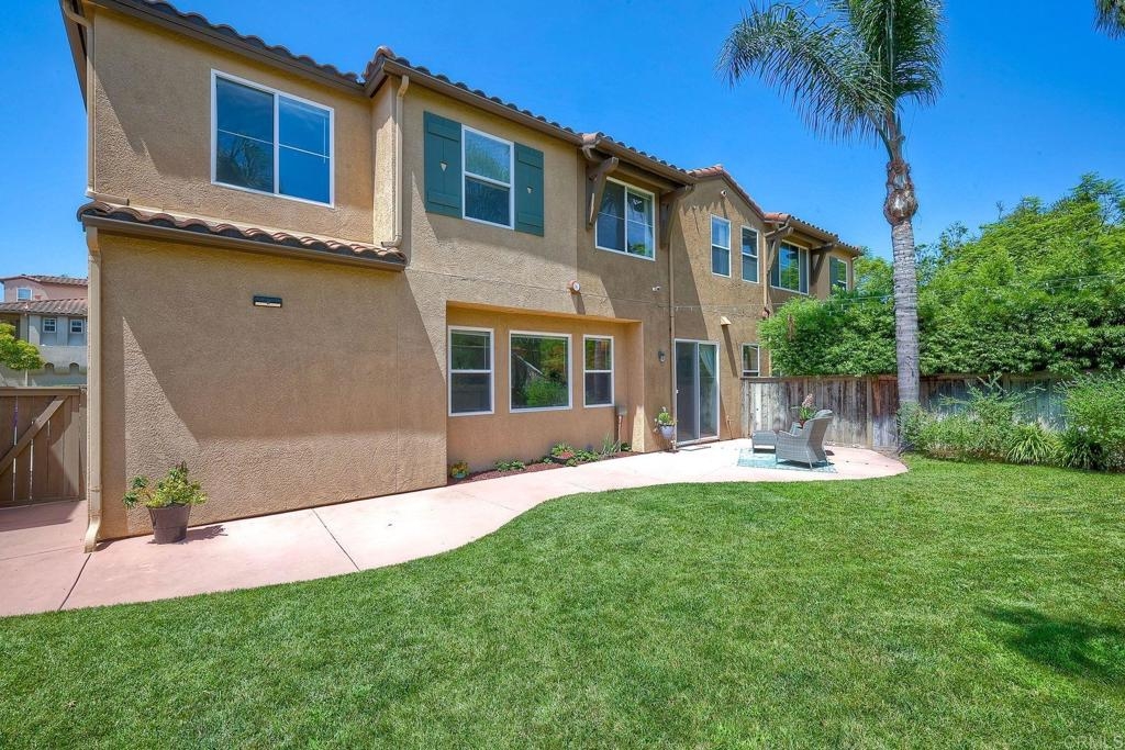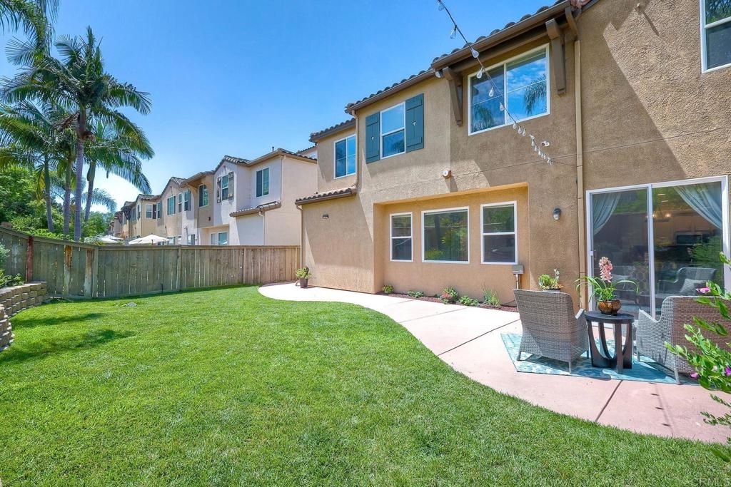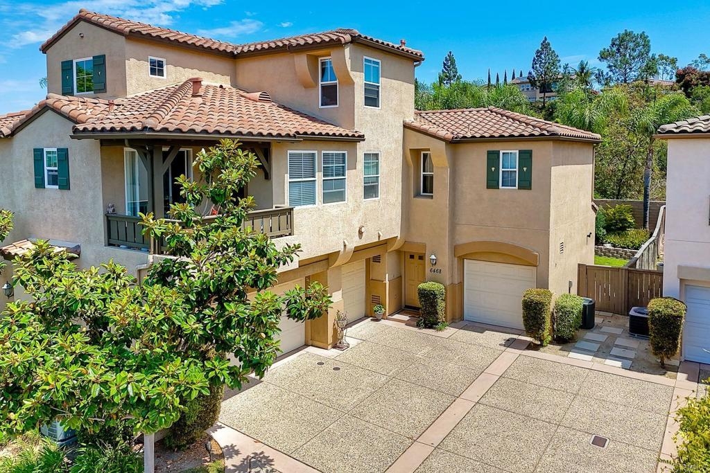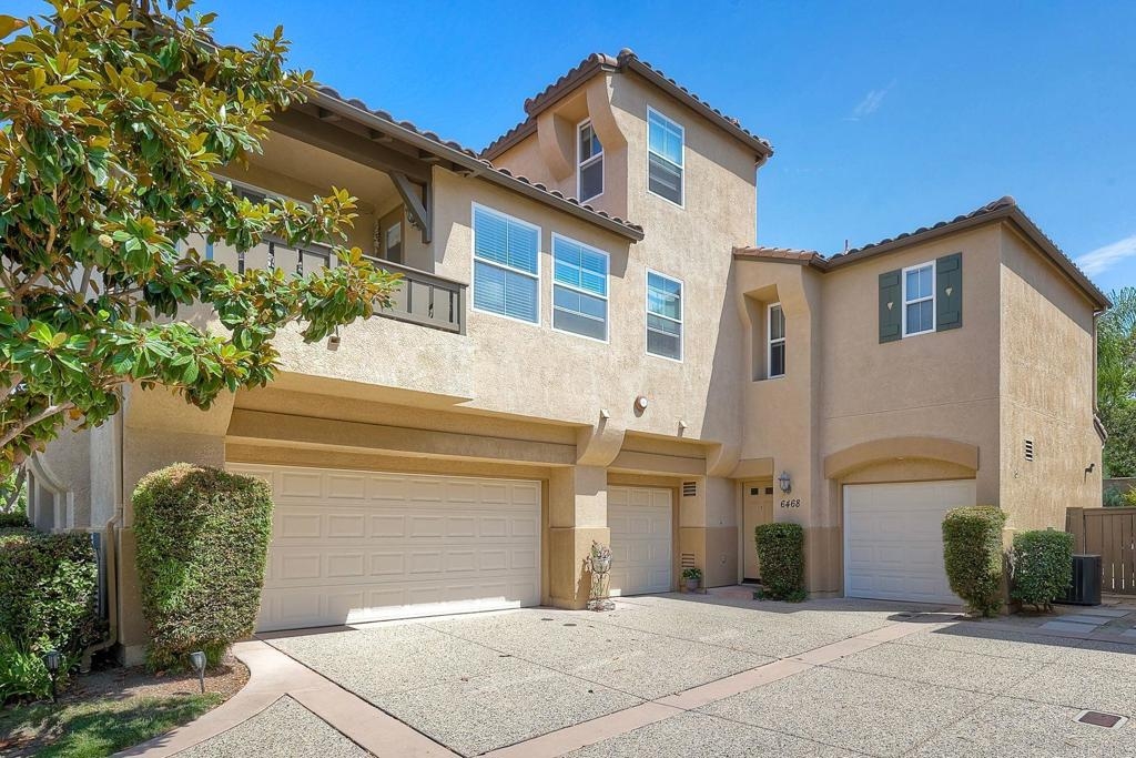 Rarely available! A large green lush yard, an amazing amount of natural light and lives like a detached home. Welcome to 6468 Terraza Portico, Carlsbad, CA 92009! This stunning 3BR, 2.5BA home in the gated community of Portico spans nearly 1500 sq ft and offers a seamless blend of elegance, convenience and truly feels like a detached home with a large expansive yard. This home ensures year-round comfort and includes newer A/C for those days after lounging by the community pool, you want to cool down in the comfort of your own home. On the first floor, enjoy the spacious open floor plan filled with natural light, featuring tiled floors, modern updated cabinets, granite countertops with stylist backsplash, and newer stainless-steel appliances, you also have a half bathroom and direct access to his and her garages with custom overhead racks with an abundance of storage. Upstairs the primary suite is a true retreat with an extra-large bathroom, vanity area, walk-in closet and views into your lush green yard. There are two additional bedrooms and full bath upstairs with private shower/tub combo. Outdoors, a large backyard awaits for entertaining your friends and family. Residents have access to 2 pools/spas (one being heated year-round), walking and hiking trails, as well as the Rancho Carrillo Club House. You are located close by to Bressi Ranch Village Center and La Costa Town Center with top-notch shops and restaurants. Live an active lifestyle outdoors with world class resorts nearby with golf and Alga Norte Park with sports fields, skate park, playgrounds and Carlsbad Community Swim Center along with Leo Carrillo Historic Park. This home is perfectly situated for a vibrant lifestyle. Complex is FHA/VA approved.
