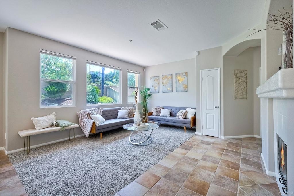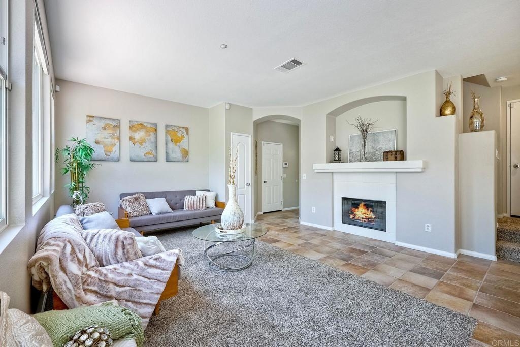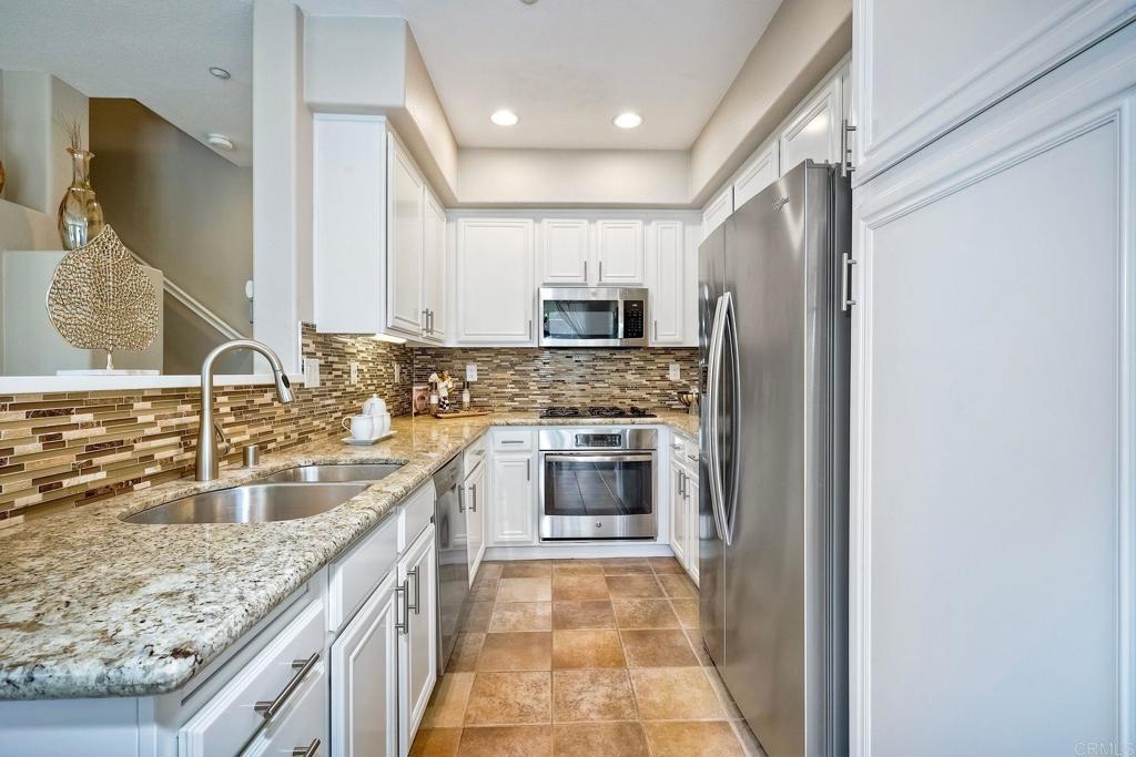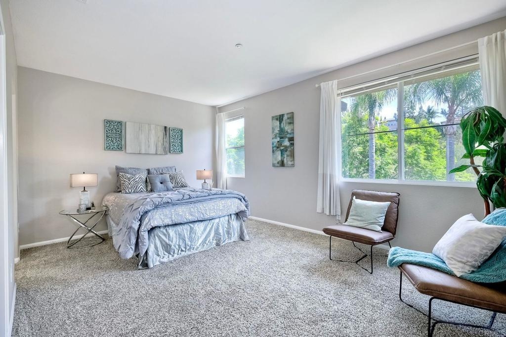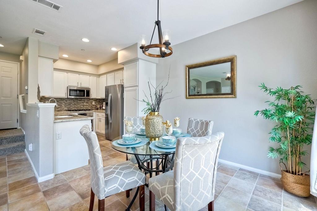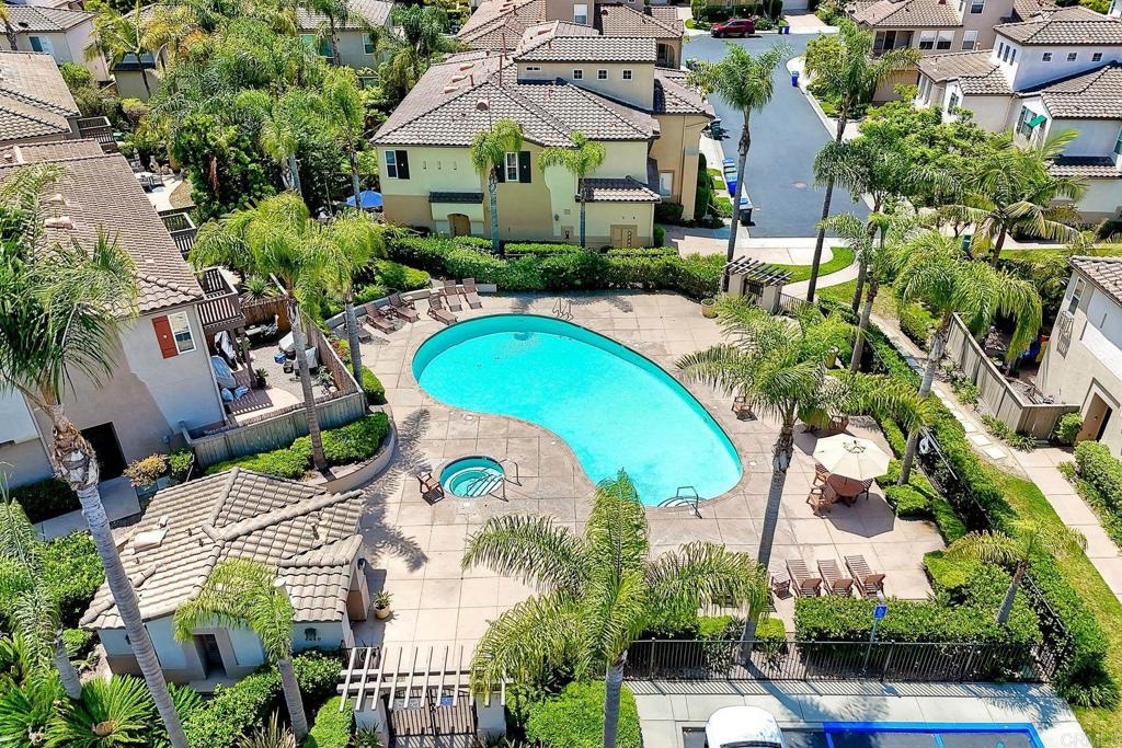 Rarely available! A large green lush yard, an amazing amount of natural light and lives like a detached home. Welcome to 6468 Terraza Portico, Carlsbad, CA 92009! This stunning 3BR, 2.5BA home in the gated community of Portico spans nearly 1500 sq ft and offers a seamless blend of elegance, convenience and truly feels like a detached home with a large expansive yard. This home ensures year-round comfort and includes newer A/C for those days after lounging by the community pool, you want to cool down in the comfort of your own home. On the first floor, enjoy the spacious open floor plan filled with natural light, featuring tiled floors, modern updated cabinets, granite countertops with stylist backsplash, and newer stainless-steel appliances, you also have a half bathroom and direct access to his and her garages with custom overhead racks with an abundance of storage. Upstairs the primary suite is a true retreat with an extra-large bathroom, vanity area, walk-in closet and views into your lush green yard. There are two additional bedrooms and full bath upstairs with private shower/tub combo. Outdoors, a large backyard awaits for entertaining your friends and family. Residents have access to 2 pools/spas (one being heated year-round), walking and hiking trails, as well as the Rancho Carrillo Club House. You are located close by to Bressi Ranch Village Center and La Costa Town Center with top-notch shops and restaurants. Live an active lifestyle outdoors with world class resorts nearby with golf and Alga Norte Park with sports fields, skate park, playgrounds and Carlsbad Community Swim Center along with Leo Carrillo Historic Park. This home is perfectly situated for a vibrant lifestyle. Complex is FHA/VA approved.