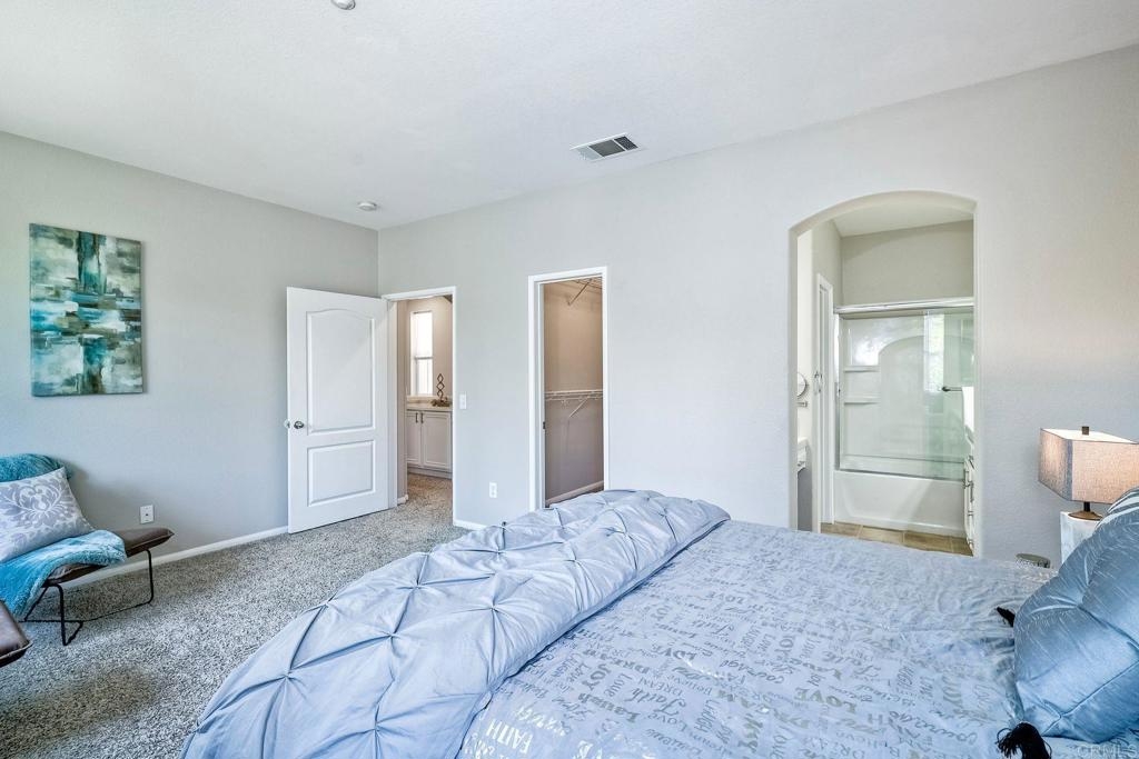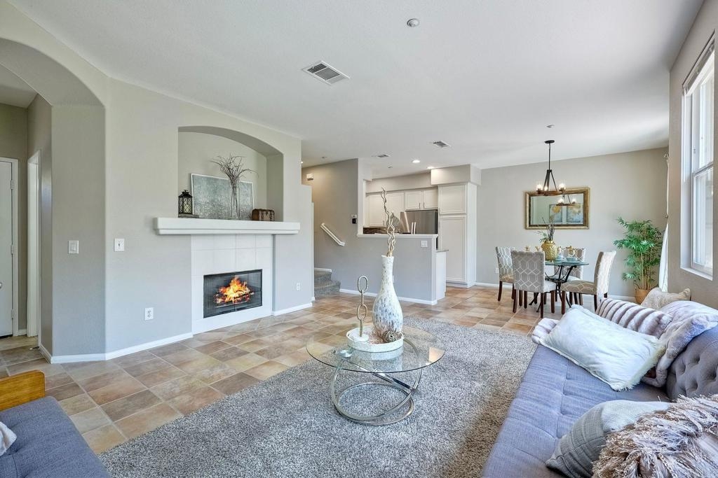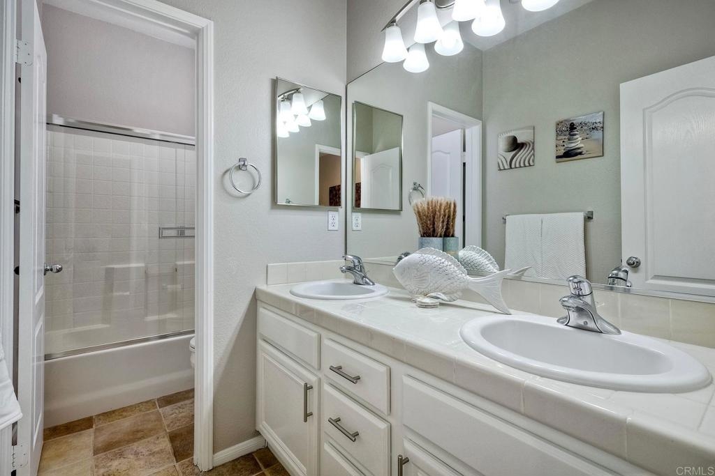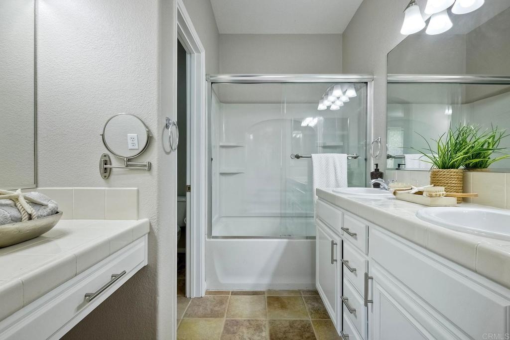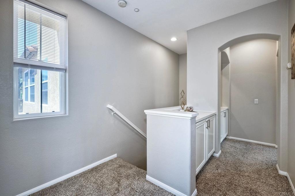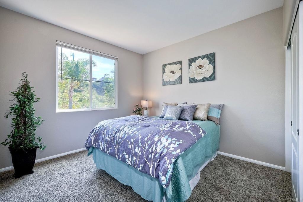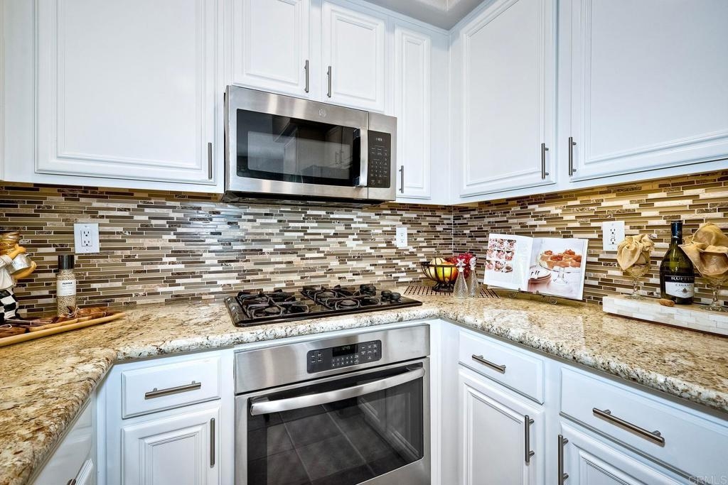 Rarely available! A large green lush yard, an amazing amount of natural light and lives like a detached home. Welcome to 6468 Terraza Portico, Carlsbad, CA 92009! This stunning 3BR, 2.5BA home in the gated community of Portico spans nearly 1500 sq ft and offers a seamless blend of elegance, convenience and truly feels like a detached home with a large expansive yard. This home ensures year-round comfort and includes newer A/C for those days after lounging by the community pool, you want to cool down in the comfort of your own home. On the first floor, enjoy the spacious open floor plan filled with natural light, featuring tiled floors, modern updated cabinets, granite countertops with stylist backsplash, and newer stainless-steel appliances, you also have a half bathroom and direct access to his and her garages with custom overhead racks with an abundance of storage. Upstairs the primary suite is a true retreat with an extra-large bathroom, vanity area, walk-in closet and views into your lush green yard. There are two additional bedrooms and full bath upstairs with private shower/tub combo. Outdoors, a large backyard awaits for entertaining your friends and family. Residents have access to 2 pools/spas (one being heated year-round), walking and hiking trails, as well as the Rancho Carrillo Club House. You are located close by to Bressi Ranch Village Center and La Costa Town Center with top-notch shops and restaurants. Live an active lifestyle outdoors with world class resorts nearby with golf and Alga Norte Park with sports fields, skate park, playgrounds and Carlsbad Community Swim Center along with Leo Carrillo Historic Park. This home is perfectly situated for a vibrant lifestyle. Complex is FHA/VA approved.
