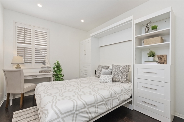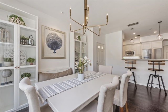 Spectacular highly upgraded Portico 3BR with no expense spared! Crisp modern finishes throughout. End unit with deep grassy back yard & a variety of fruit trees. Striking Chef's Gourmet kitchen w/Calcutta marble, leather finish granite, beveled subway tile backsplash, SS appliances, counter depth fridge, slide out drawers & pantry. Banquette dining seating area. Hardwood floors. Energy efficient Smart Home lighting. Custom garage cabinets, storage & epoxy flooring. GORGEOUS! View supplement for details. UPGRADES AND IMPROVEMENTS: Gourmet redesigned/remodeled kitchen: -Calcutta marble on custom bar counter with pendant lights -Leather finish granite -KitchenAid stainless steel Double oven -Stainless Hood over stove -KitchenAid stainless steel Counter depth fridge -KitchenAid stainless steel dishwasher -Slide out drawers in cabinets -Large lazy susan to maximize space/storage -Coat closet remodeled into pantry/storage -Beveled subway tile backsplash -Energy efficient can lighting with Alexa capacity Living Room: -Re-wired for capacity for larger television on adjacent wall for wire-free viewing -Surround sound speakers -Energy efficient can lighting Smart home: -Recessed lighting in every room downstairs with Alexa capacity and stairway lighting -Nest thermostat with Alexa capacity -Art lights with Alexa capacity -All electrical light switches replaced (Some switches are Lutron) -Dimmer switches and USBs in many outlets for charging devices conveniently Misc. -Both walk-in closets, toilet room in master bath, and laundry room lights motion detected with automatic turn off -Master bedroom has light switches installed by bed for convenient turn off (hotel lights) -Custom closets and shelving in all 3 bedroom closets -Custom garage cabinets and shelving for storage -Epoxy floors in garage -Banquette in dining room with shelving -Chandeliers in dining room and stairway hall -Murphy bed in 2nd bedroom/office -All white cabinetry in kitchen, bathrooms, and lin...