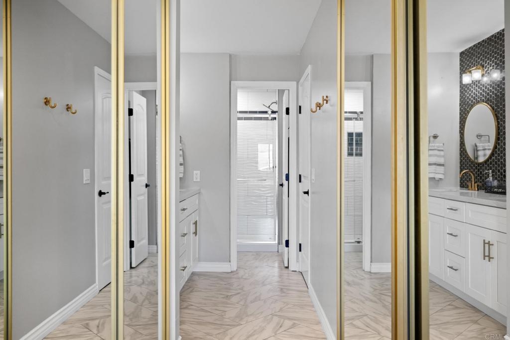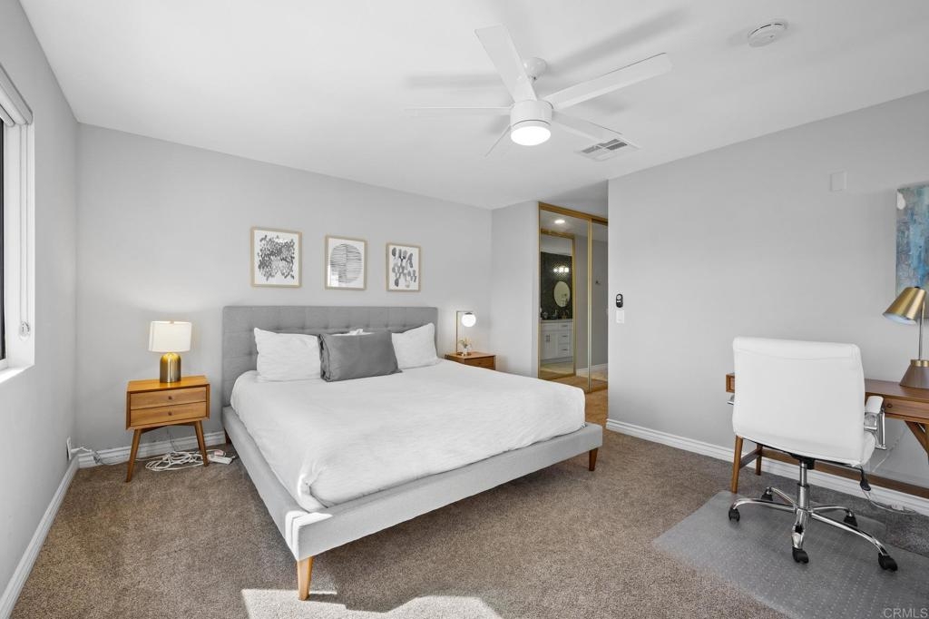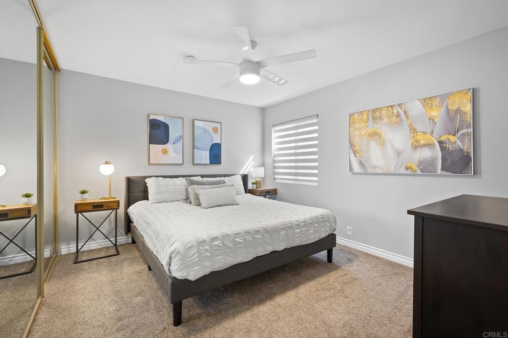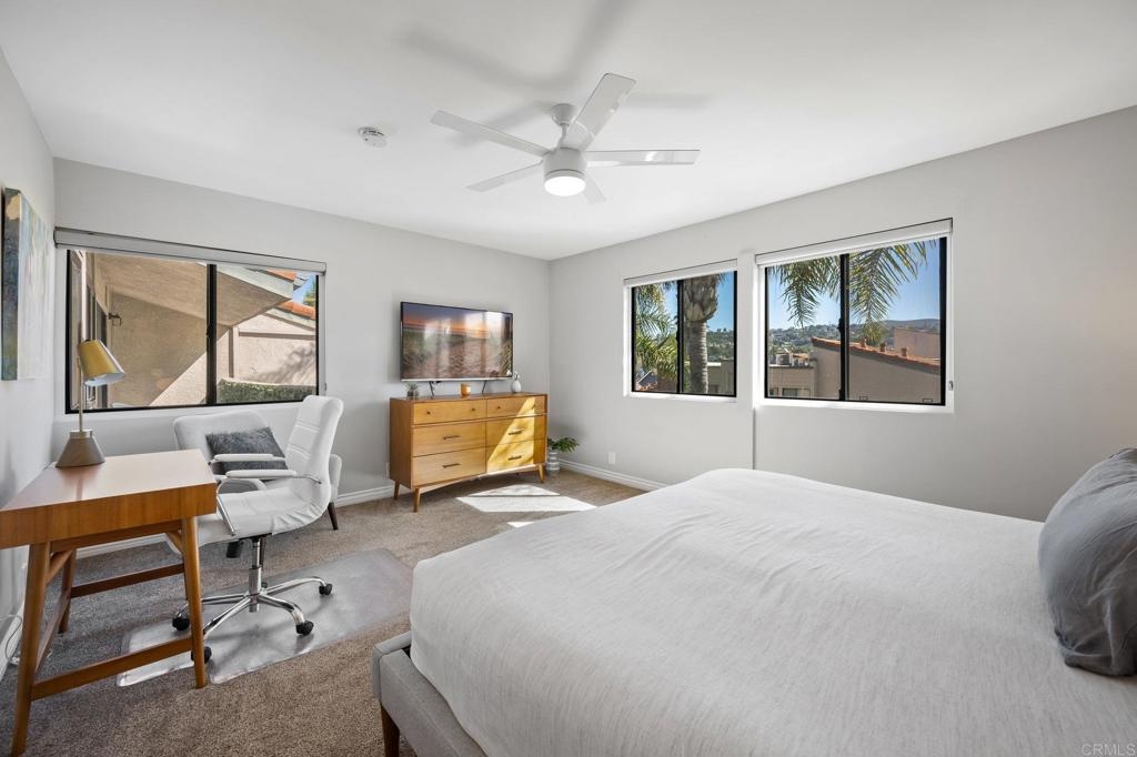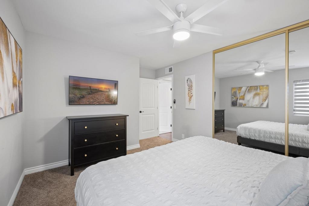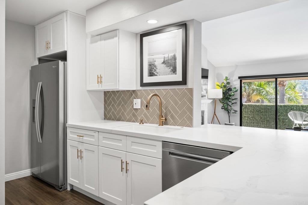 Welcome to this highly upgraded home nestled on the renowned La Costa Golf Course. This inviting, remodeled residence is the top floor end unit, with only one neighboring wall in a comfortable 1,401 square feet of single-level living space. This home has beautiful streams of natural light with windows on 3 sides, tall ceilings and gorgeous clerestory windows. Updated with new flooring, new kitchen with quartz countertops, new bathrooms with stunning tile, upgraded shower doors, bar area with beautiful shelving, new lighting throughout, ceiling fans, new appliances, high-end gold fixtures, new windows and slider, designer blinds throughout, window tint, bedroom closet organizers, & smart home thermostat and door lock. Situated in the quiet and private gated community of Sabrina Greens, featuring elevators, garage parking, security gates, newly remodeled pool, spa, barbecue area and clubhouse. Carlsbad's picturesque coastline and 67 miles of trails are just minutes away from this cozy getaway. Must see in person.