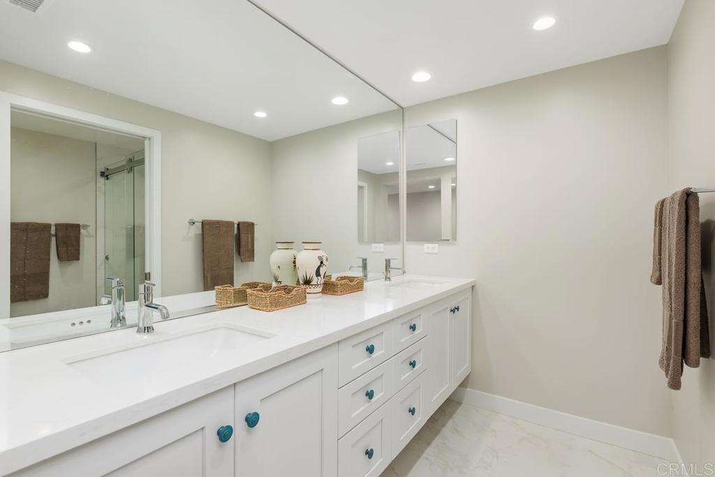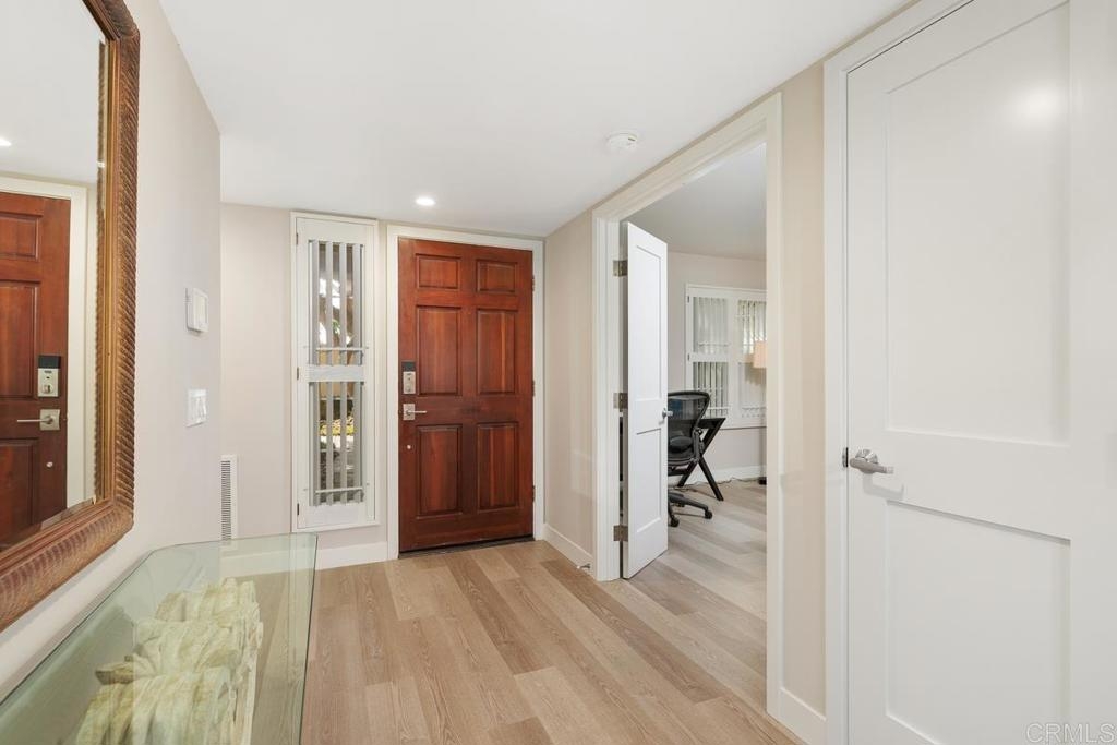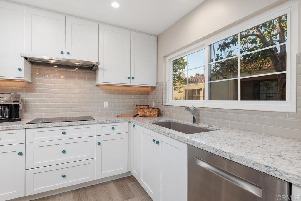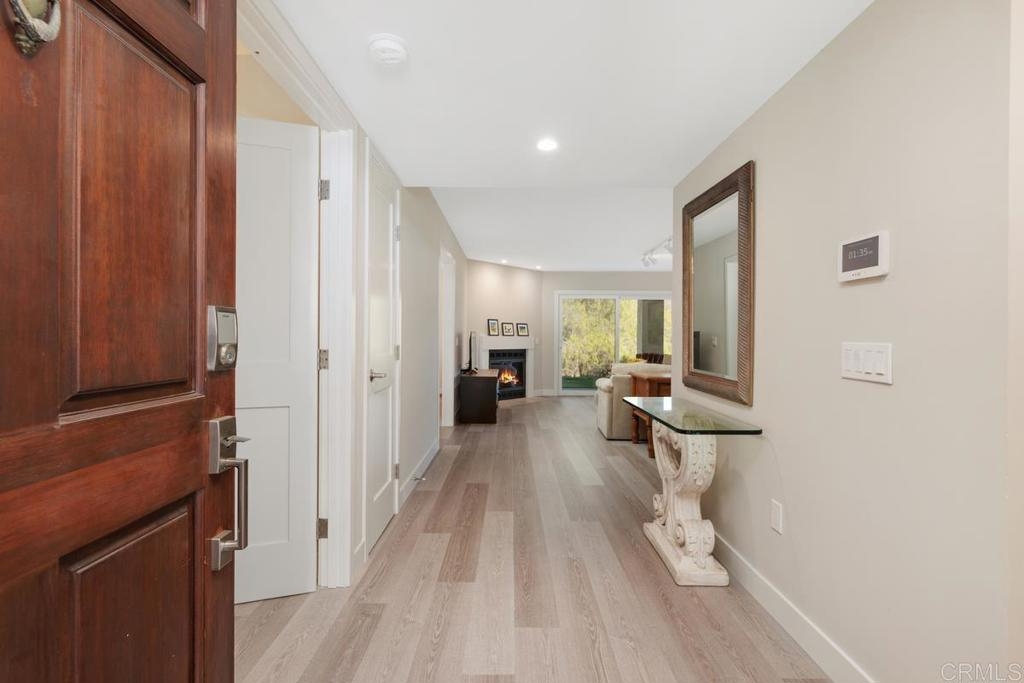 Move-in ready and highly upgraded, this stunning 3-bedroom, 2-bathroom condo in the sought-after Sea Point Tennis Club offers the perfect blend of luxury and comfort. Spanning 1566 square feet, this end unit, single story home boasts breathtaking canyon views and an abundance of natural light. Every detail has been thoughtfully upgraded, featuring Hallmark luxury vinyl plank flooring throughout, custom-designed Omega cabinets, quartz countertops and a built-in Bosch convection oven in the gourmet kitchen. The home also includes new low-E glass Milgard windows and sliding doors, along with upgraded electrical, a new AC unit, furnace, water heater and a convenient in-unit washer and dryer. The bathrooms showcase modern upgrades such as one gallon flush toilets and all interior doors, frames and trims have been replaced for a polished, contemporary look. The property includes a 1-car garage and a designated parking space, ensuring convenience and ease. Sea Point Tennis Club offers resort-style living with access to two sparkling pools, tennis courts and lush green spaces. Don't miss your chance to experience this beautifully upgraded condo in the heart of Carlsbad!