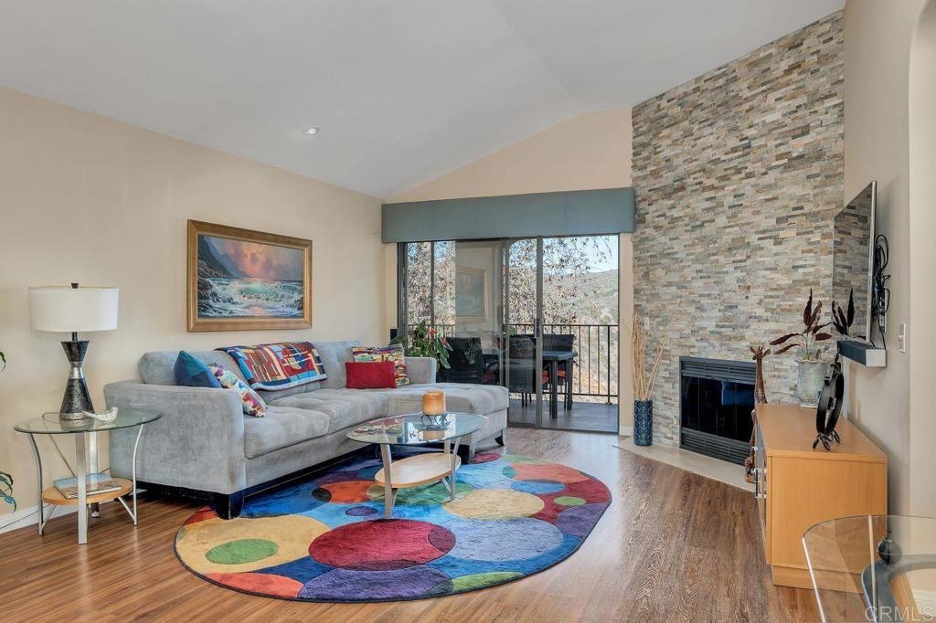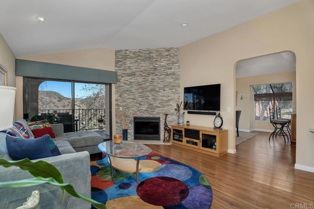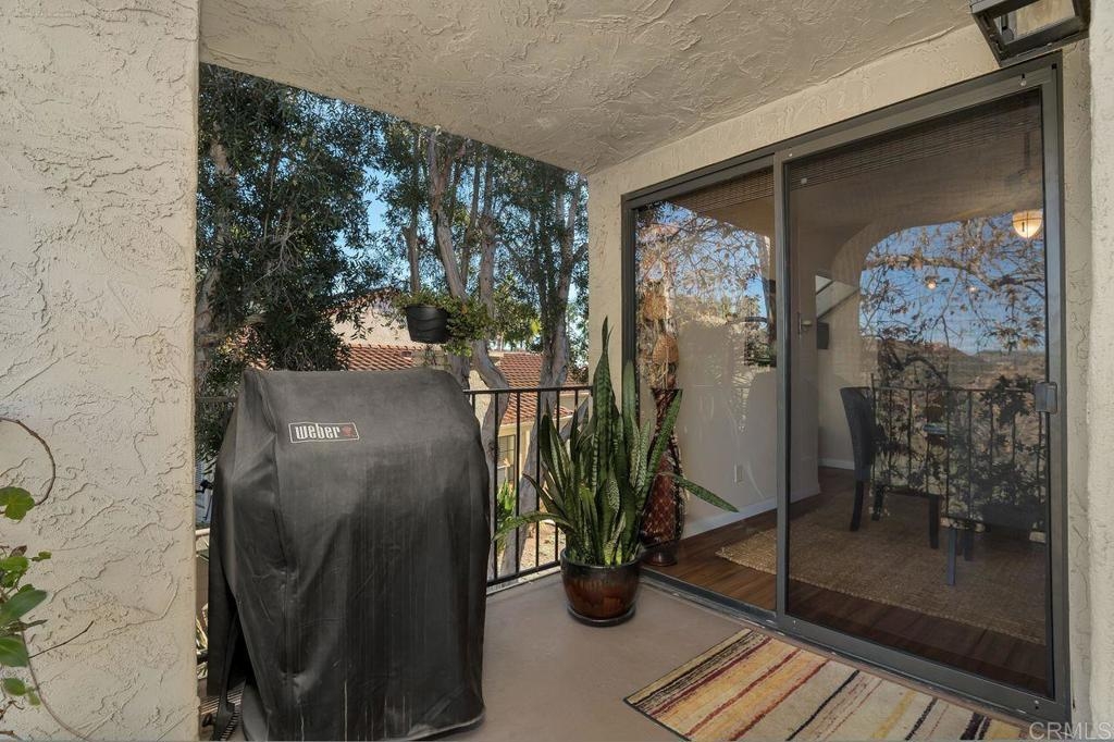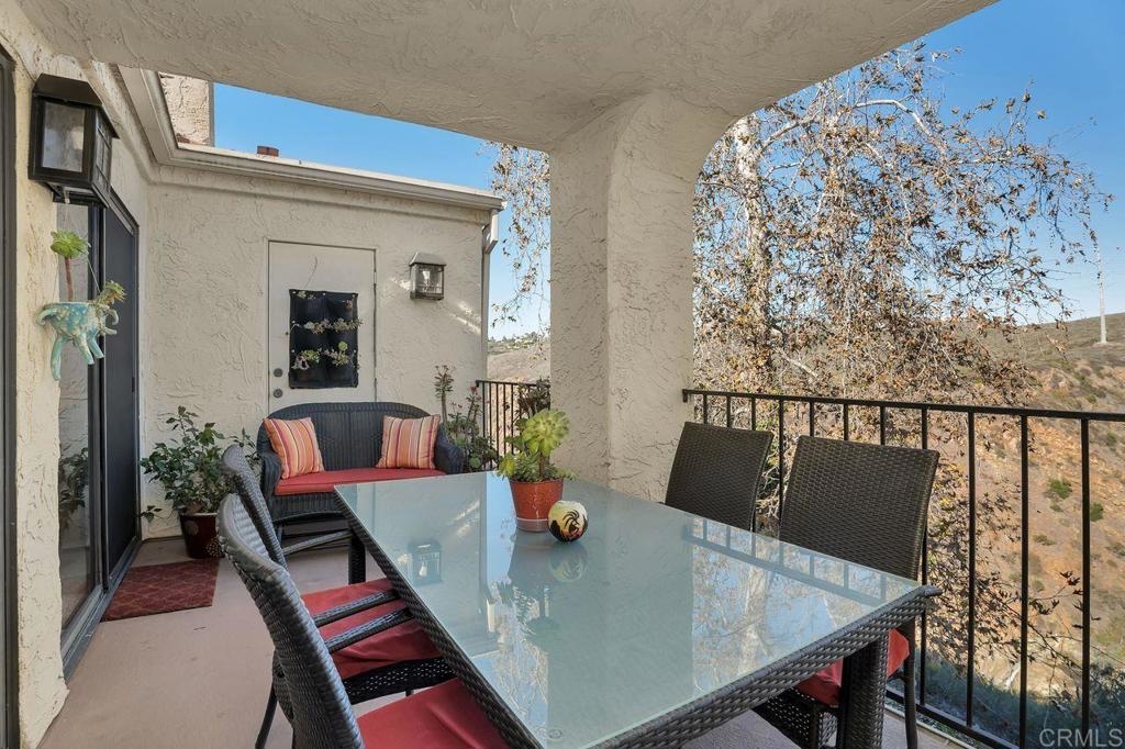 Amazing location with large patio balcony overlooking Box Canyon. In winter months you can see and hear waterfalls running through the canyon below. This upstairs corner unit is in a serene and tranquil location. Step inside to vaulted ceilings and lots of natural light from bay windows and sliding patio doors. Three bedrooms, one currently used as an office. The master bedroom has two walk-in closets. Sunny upgraded kitchen opens to a light and bright dining room. Large living room with cozy floor to ceiling fireplace opens to a balcony with gorgeous views of the canyon and the waterfall below. Enjoy living in this resort style community which includes four tennis courts; plus two pools and spas. This beautiful community is close to parks and walking trails. Just a short drive to Ponto Beach, La Costa Town Square with plenty of shopping and restaurants nearby.