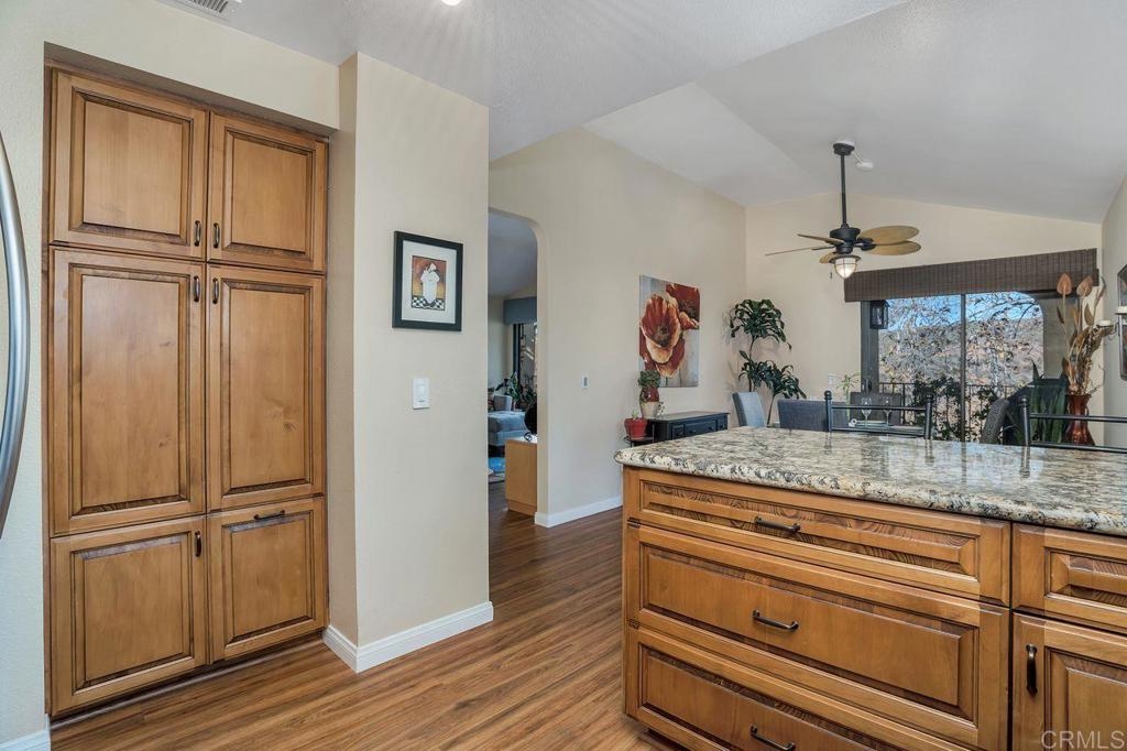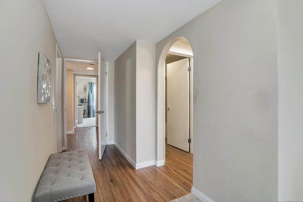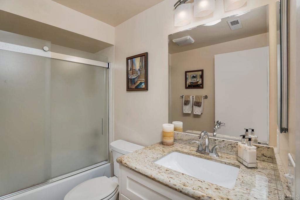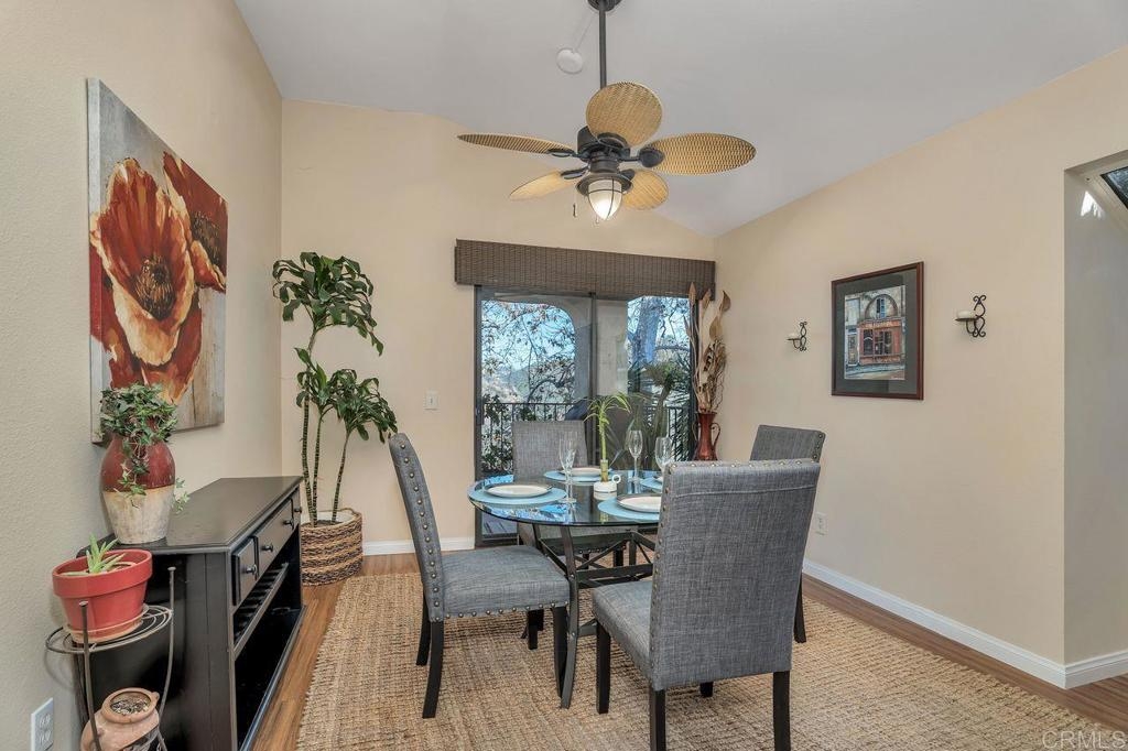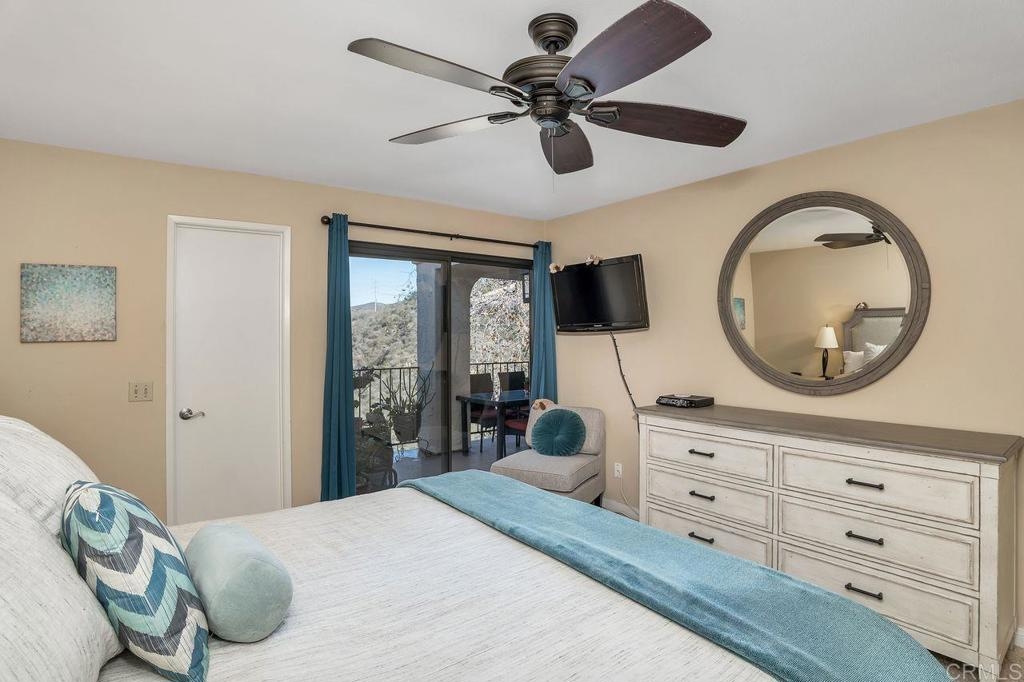 Amazing location with large patio balcony overlooking Box Canyon. In winter months you can see and hear waterfalls running through the canyon below. This upstairs corner unit is in a serene and tranquil location. Step inside to vaulted ceilings and lots of natural light from bay windows and sliding patio doors. Three bedrooms, one currently used as an office. The master bedroom has two walk-in closets. Sunny upgraded kitchen opens to a light and bright dining room. Large living room with cozy floor to ceiling fireplace opens to a balcony with gorgeous views of the canyon and the waterfall below. Enjoy living in this resort style community which includes four tennis courts; plus two pools and spas. This beautiful community is close to parks and walking trails. Just a short drive to Ponto Beach, La Costa Town Square with plenty of shopping and restaurants nearby.