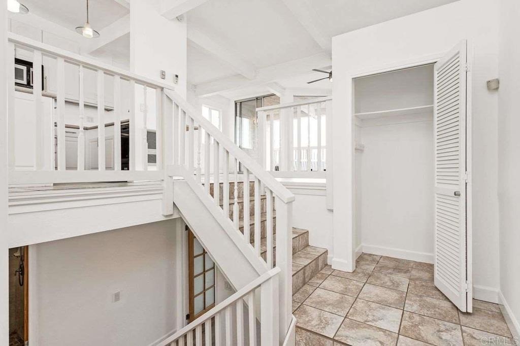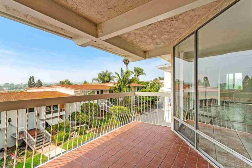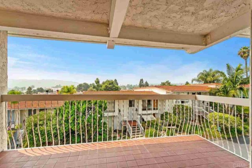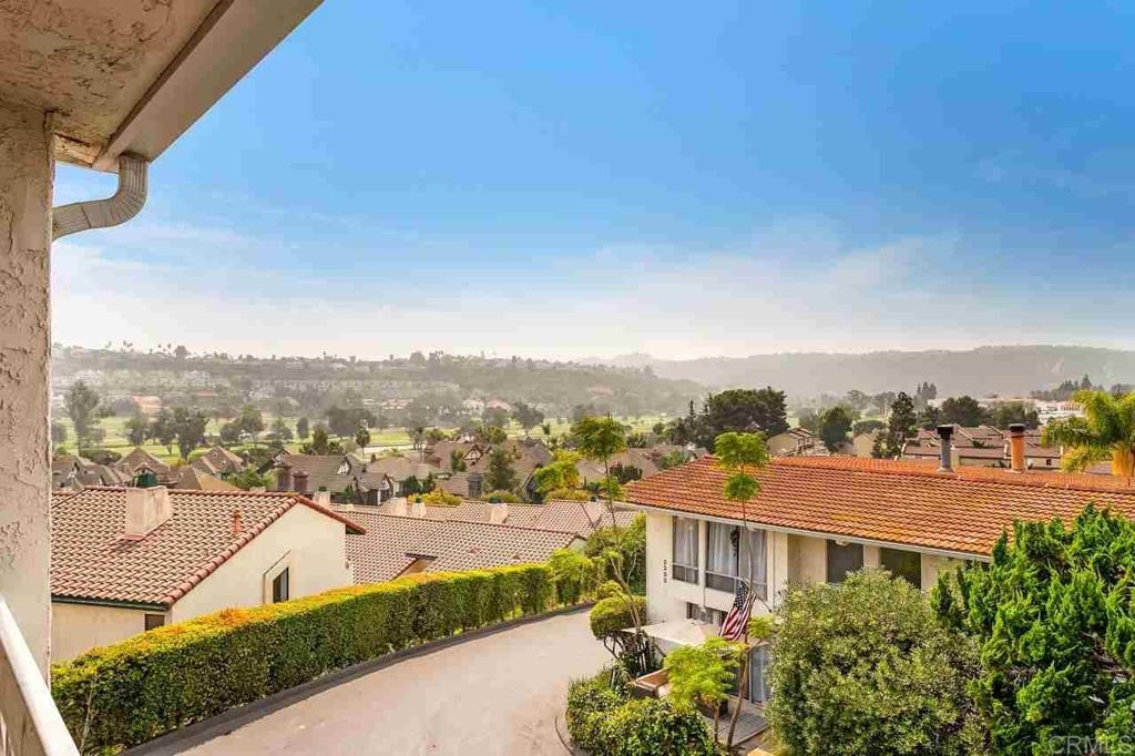 "Want to live in Carlsbad?" Coastal living at its best! Welcome home where birds sing in the mornings....fabulous panoramic VIEWS of the La Costa Golf Course and to the south and west (awesome sunsets off your private balcony). Natural light comes through your west and east floor to ceiling windows of this freshly painted townhome. This 2 BR/2 BA end unit is spacious and open. Your upper level is one flowing great room including: an open kitchen with island, built in wine cooler, and lots of white cabinets; livingroom with private balcony; and diningroom. All with tile flooring. Exposed beams and high ceilings are some other features that make this home feel like a NY loft. Two bedrooms encompass the lower level. Both recently installed with new laminate plank flooring. Master has walk in closet along with en suite bathroom complete with sunken bathtub. Second bedroom has plenty of storage and private patio. Your home also comes with a 2 car attached garage with laundry hookups and plenty of storage. Seaview Townhomes have a pool and spa.