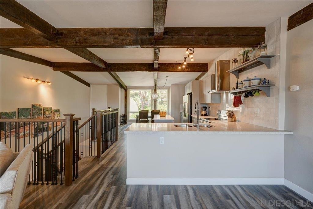 Welcome to Sea View. This stunning modern/contemporary, tri-level townhome has lots of upgrades including kitchen, floors, window and sliders, hand rails, secondary bath and much more. Enjoy cool ocean breezes and mountain/sunset views from the 2 covered, west facing balconies. This end unit with attached 2 car garage has lots of storage. Top level has vaulted ceilings with exposed beams, dining area, family room and open kitchen. Second level has 2 bedrooms/baths and a private courtyard patio. The garage and laundry are on the bottom level.