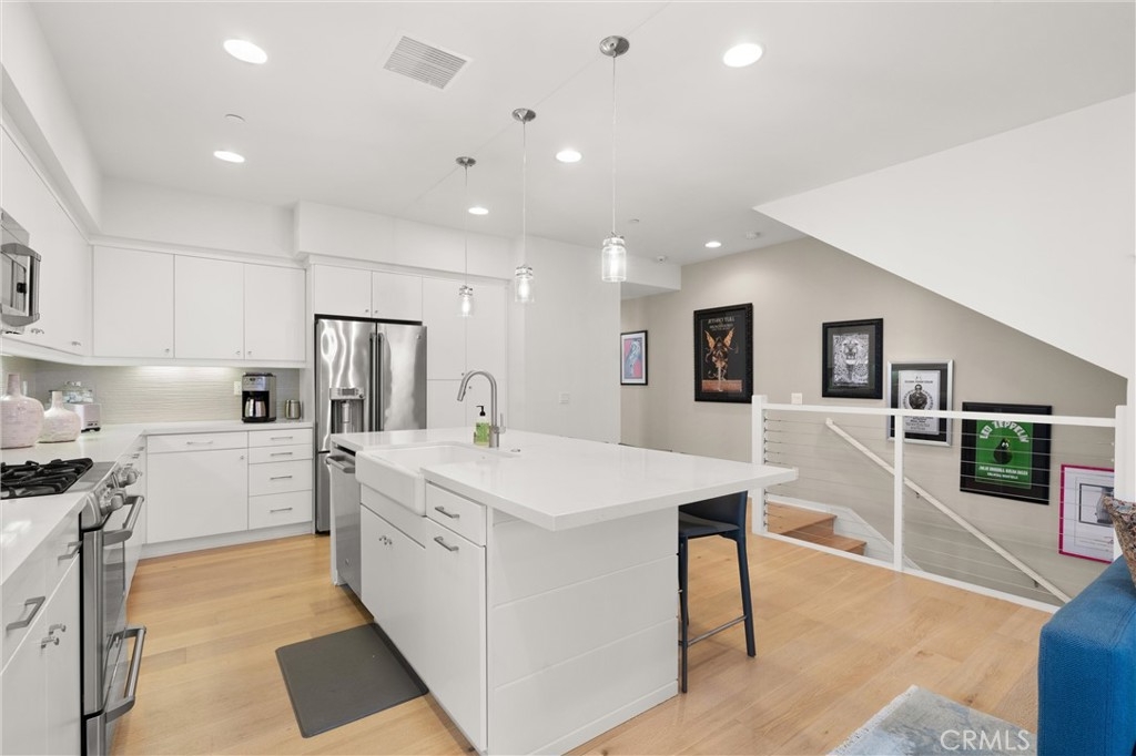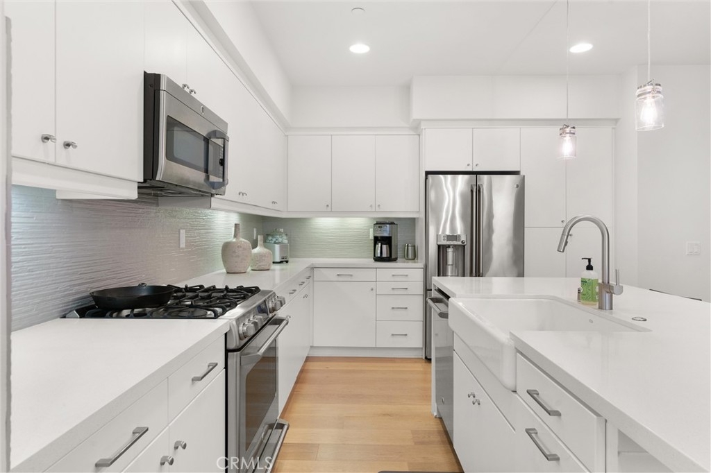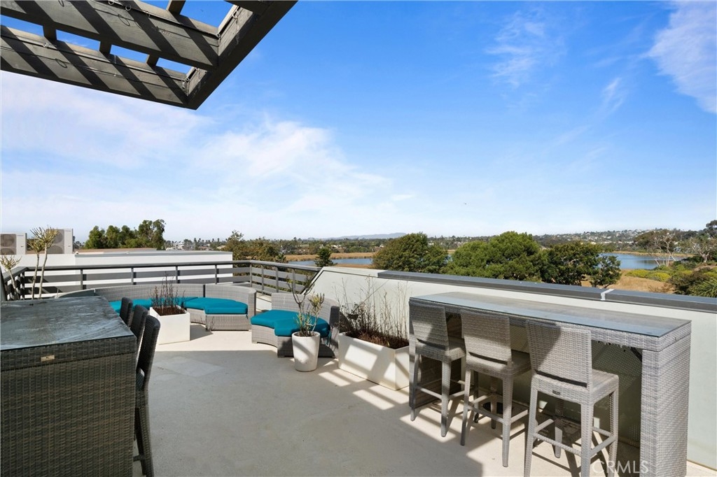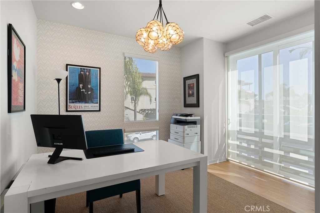 New price. Shows like the model it was. In brand new condition. Rarely lived in second home for original owner. Calming colors. End unit with lots of natural light on all three floors. Second floor living room, dining area, and chef’s kitchen with lots of counter space and storage. 3 bedrooms and 3.5 bathrooms with the ability to reconfigure to add 1 more bedroom on ground floor. Primary bedroom suite and second bedroom on third floor. Second floor bedroom is currently configured as an office. Ground floor entry. Oak floors throughout. Direct access beautiful private rooftop patio with bay views, peek-a-boo ocean view and plenty of room for seating and dining. In unit laundry and direct access 2-car garage. Great location with short walk to downtown and beach.