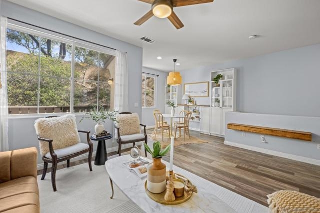 Turnkey! Private townhome with no front neighbors, abundant natural light, and attached 2-car garage. Primary suite on main level, features luxury vinyl plank flooring, barn door, stainless steel appliances, and stackable washer/dryer. Laminate flooring throughout. Outdoor spaces include a first-floor patio and second-level balcony. Community pool and spa. Rancho Carrillo offers the perfect blend of convenience and natural beauty. Miles of walking trails and the Rancho Carrillo Swim Center complete with heated pool, spa, and clubhouse. Bressi Ranch Square just a stone's throw away, featuring a variety of fantastic restaurants such as Tommy V's, Giola, Casero, Panini Grill, Mendocino Farms, and Board & Brew. You'll also find all your shopping essentials nearby, with Trader Joe's, Stater Bros, Sprouts, Bevmo, CVS, Target, and Starbucks just around the corner. If you're looking to explore the great outdoors, Rancho Carrillo provides hiking trails for outdoor enthusiasts. Additionally, the historic Leo Carrillo Ranch is a treasure nearby, offering a glimpse into the past, a chance to explore the grounds, learn about Leo Carrillo himself, and partake in community events hosted by the City of Carlsbad.