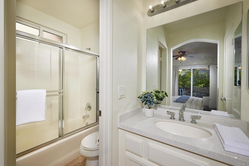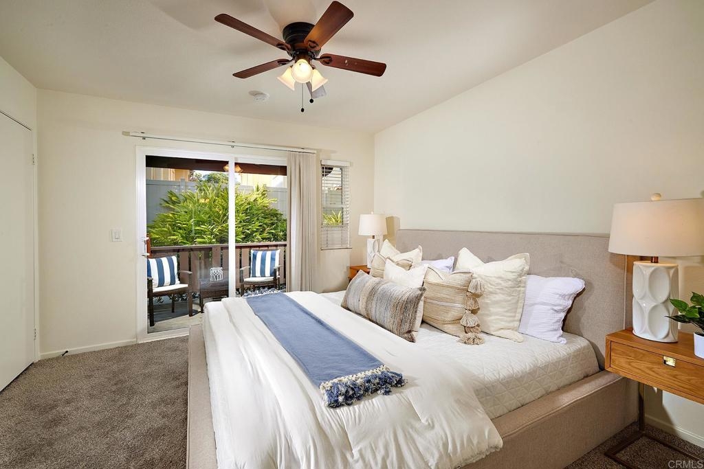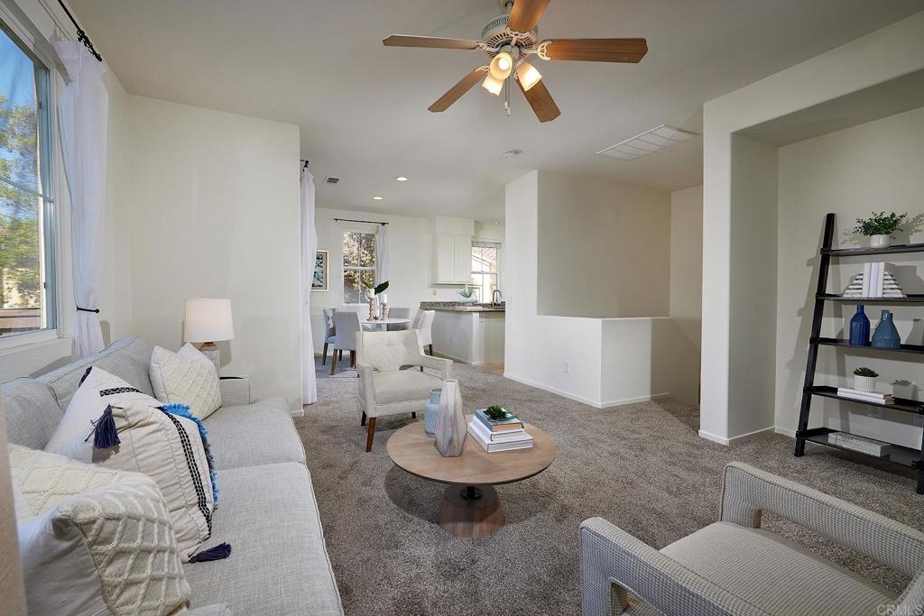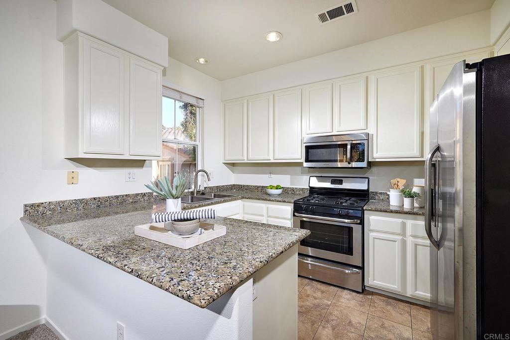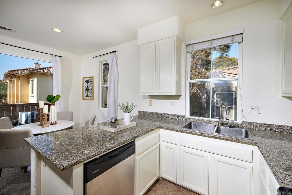 Nestled in a prime location, this beautifully renovated Rancho Carrillo home has been tastefully upgraded with fresh paint and new plush carpet. The open concept great room is flooded with natural light, creating an inviting and airy atmosphere. The spacious layout seamlessly integrates the living and kitchen areas, and the deck off of the dining room provides a perfect space for entertaining guests. The primary bedroom, located on the first floor, features a new sleek quartz countertop in the ensuite bath and the covered patio offers the ideal spot to enjoy your morning coffee. Additional upgrades include slab granite countertops, stainless steel appliances and soft close hinges.The highly sought-after Rancho Carrillo community offers an array of amenities, including parks, walking trails, and pool facilities, allowing you to embrace an active and vibrant lifestyle. With its convenient location, you'll have easy access to shopping, dining, and entertainment options, ensuring that you're never far from the action. Additionally, you'll be pleased to discover that the award-winning Rancho Carrillo Elementary School is within walking distance, and the pristine Carlsbad beaches are just a short 5-mile drive away.