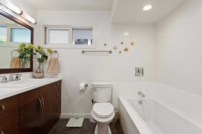 LOCATION LOCATION LOCATION. Fabulous downstairs luxury condo located in the small, tight knit community of South Park at Carlsbad. This unit is ideally priced and in close proximity to the beach and the village. The living space consists of fresh paint throughout, Luxury vinyl flooring, a built-in desk, ceiling fan, custom blinds, and a sliding glass door that leads to the patio. The kitchen boasts stainless-steel appliances, dark stained cabinets, ample counterspace with bar seating, and a large pantry. The bedroom includes a large walk-in closet with organizers, ceiling fan, custom window coverings, vinyl flooring, and a built-in armoire. Ensuite bathroom includes a soaking tub, separate glass enclosed shower, and a large vanity. Unit includes a separate locked storage space and a 1-car garage. Enjoy the many amenities this community has to offer including a jacuzzi, gym, and BBQ. Come enjoy everything Carlsbad Village has to offer including world class restaurants, shops, street faire, the boardwalk, surfing, volleyball, paddleboarding at the beach and lagoon and so much more. Close to Legoland, the Flower Fields of Carlsbad Ranch, several golf courses, and Carlsbad Premium Outlets. If you are looking to live an active lifestyle amidst all that Carlsbad has to offer, this is the place to call home.
