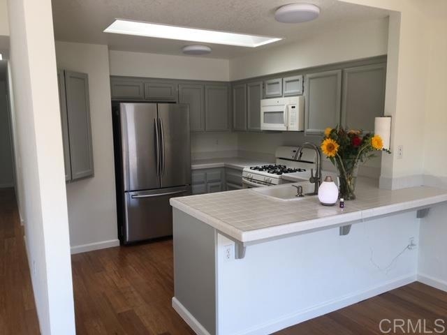 SINGLE STORY 3 BEDROOM, 2 BATH, END UNIT WITH 2 CAR GARAGE ONLY 2.5 MILES TO THE BEACH! Great natural light enhanced with skylight & vaulted ceilings. New solid interior doors & hardware, new bamboo flooring, gas range, new microwave, new refrigerator, nice carpet, dual pane windows, ceiling fans, updated bathroom, generous exclusive use yard & more. Beautifully painted garage floor. Amenities-2 pools, tennis courts, park, extensive greenbelts & RV parking per homeowner association guidelines & availability. Close to numerous shops, vast dining options, Legoland, bus & rail service, parks, schools, golf, hiking & biking trails.