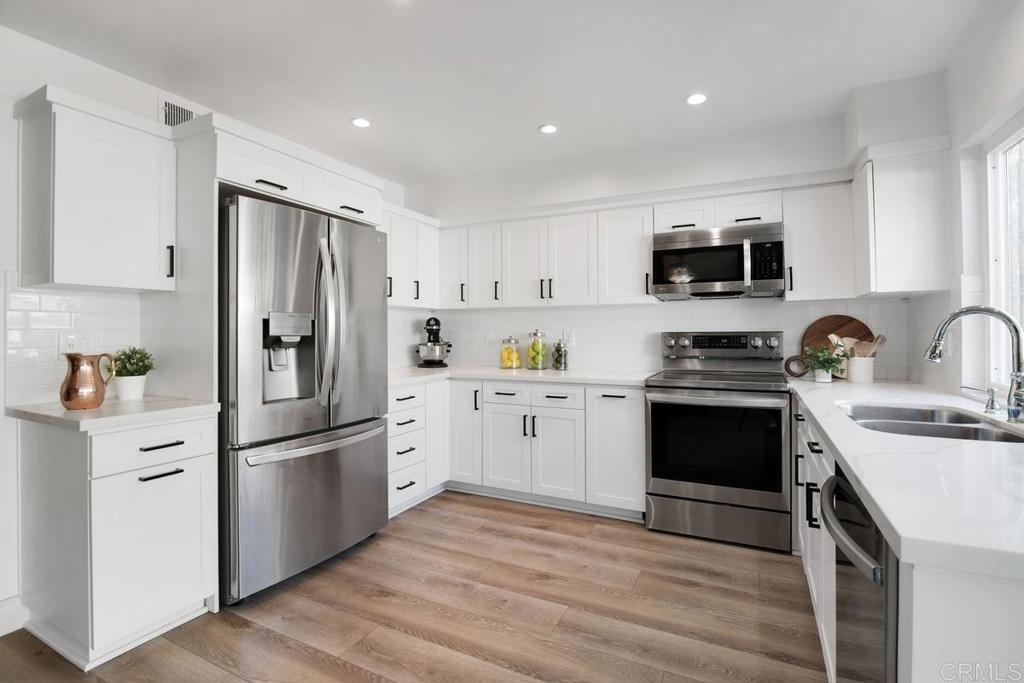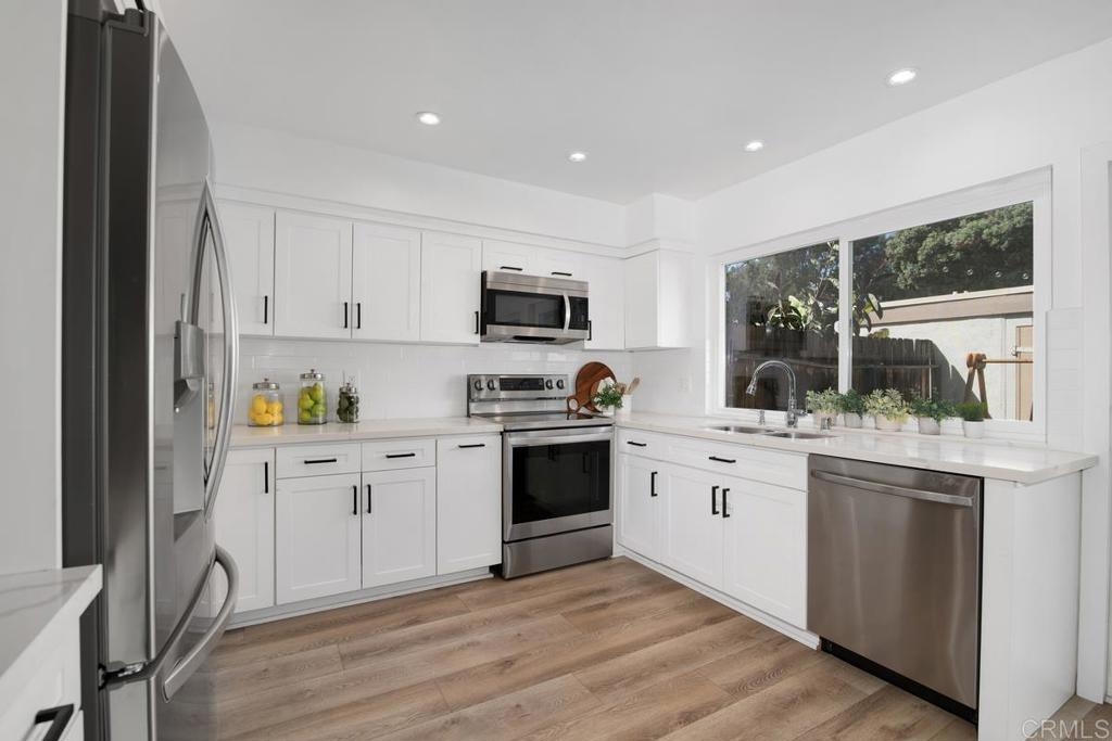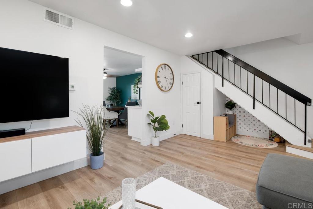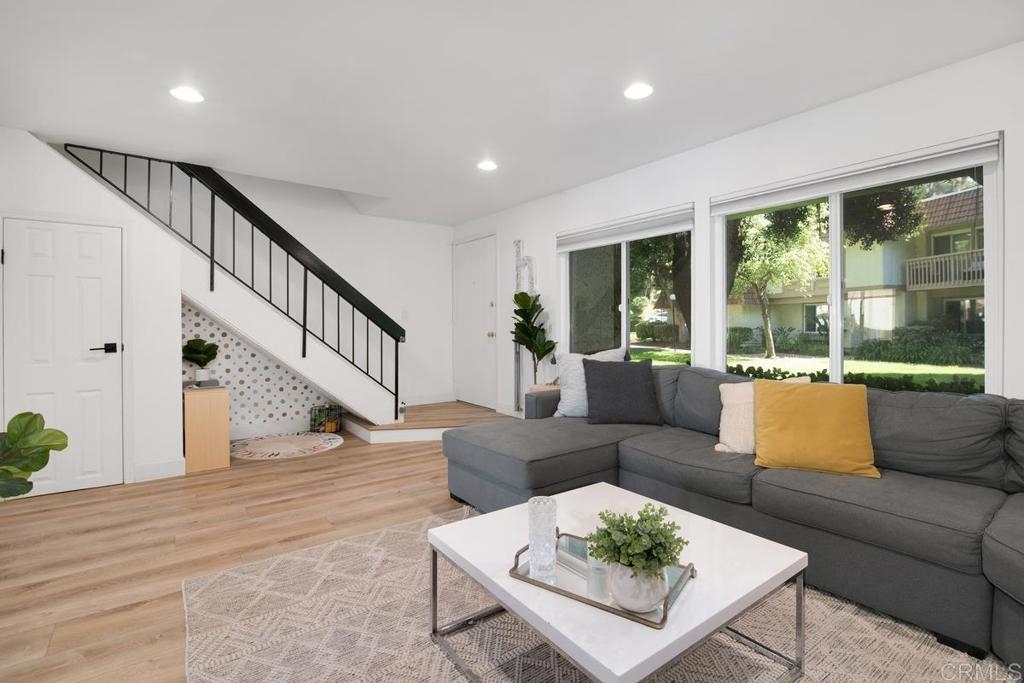 Tucked into one of Carlsbad’s most sought-after pockets, this beautifully updated 3-bed, 2.5-bath townhouse offers 1,496 est.sq. ft. of light-filled living and fresh, modern style. Peacefully set on a lush greenbelt, you’re just minutes from downtown Carlsbad, beaches, shopping, and top-rated schools—giving you the best of both worlds. Inside, wide-plank LVP flooring, crisp white walls, and a sleek open staircase set a contemporary tone. The fully remodeled kitchen features marble-style countertops, subway tile, stainless steel appliances, extended cabinetry, a bonus pantry, and a custom bar area—blending timeless design with everyday functionality. The spacious dining area easily fits an 8-person table, perfect for entertaining. Step outside to your private, low-maintenance courtyard with fresh turf—ideal for BBQs, outdoor dining, or relaxing weekends. It’s fully enclosed for pets or kids and connects directly to both the kitchen and attached 2-car garage. Upstairs, the primary suite offers greenbelt views from a private balcony and space for a sitting area or desk. Two additional bedrooms, a full bath, and a hallway linen station echo the home’s clean, cohesive design. Move-in ready and thoughtfully upgraded, this home blends comfort, style, and a location that’s hard to beat. Buyer and buyer’s agent to verify all in MLS prior to COE.