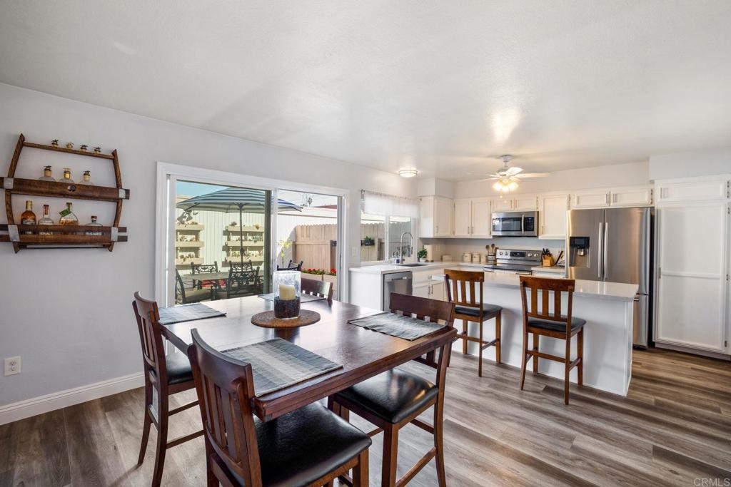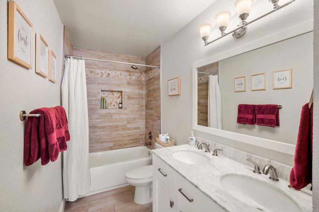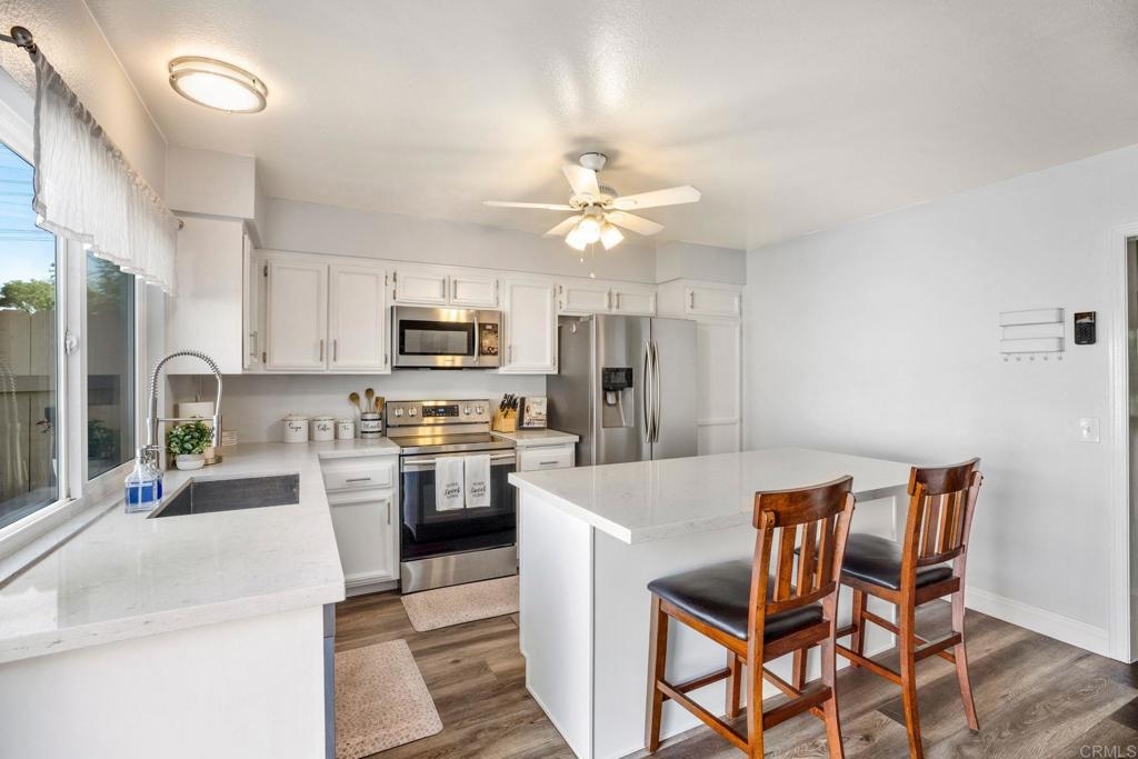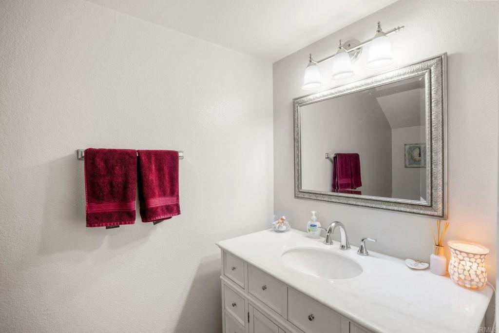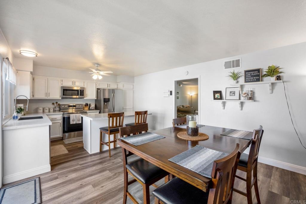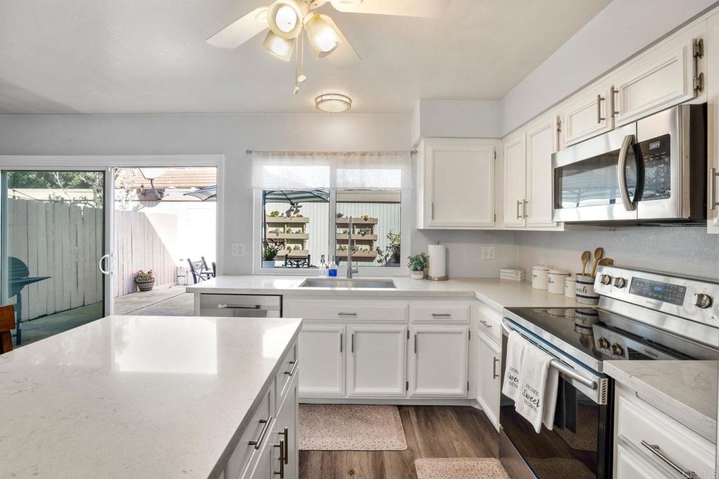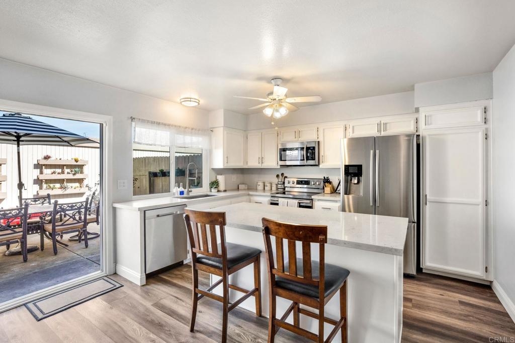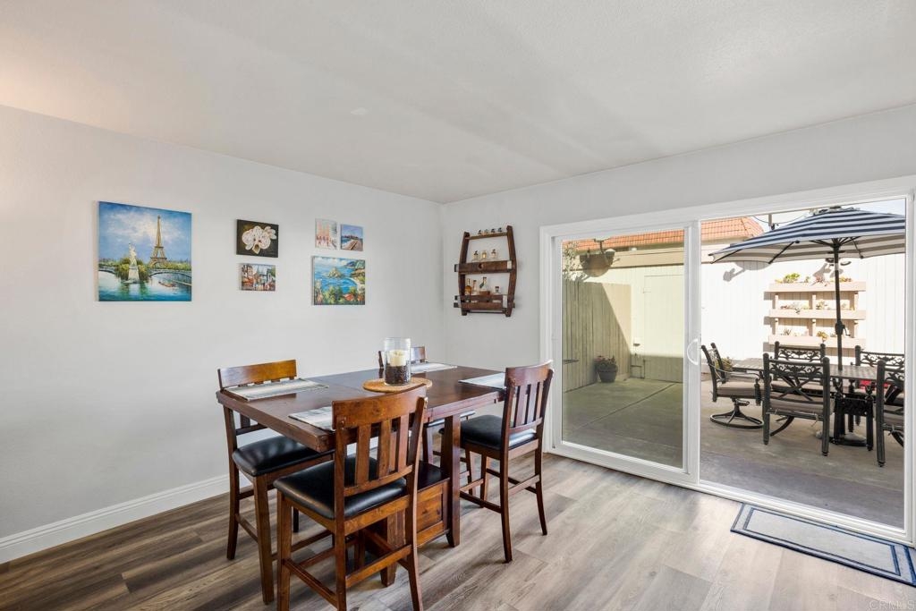 Super nice Tanglewood townhome! Luxury vinyl plank flooring downstairs. Light and bright remodeled kitchen features quartz countertops and newer stainless steel appliances. Large sliding door in family kitchen opens to the entertainer's patio / outdoor-living area. Primary bedroom suite features a balcony overlooking the park-like greenbelt. Tastefully remodeled hall bathroom upstairs. New energy efficient windows. Ceiling fans in bedrooms. 2 car garage and laundry area. VA & FHA buyers are welcome here. Seller's current 2.25% VA loan can be assumed with a transfer of VA eligibility and sufficient cash to loan. Tanglewood offers a community pool, spa, tennis, RV parking and beautifully maintained greenbelts. Very convenient Carlsbad location with stores and 78 freeway approximately a mile away. Close to 5 freeway, Carlsbad Village and beaches. Back on market 7/13/23 at no fault of Sellers.