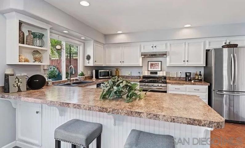 Gorgeous move-in ready recently up-graded townhome is centrally located near Carlsbad Village. 4 bed 2.5 baths end unit w/spacious enclosed patio and private entrance to 2 car garage. Lots of light on 3 sides with dual pane windows w/plantation shutters in the large open concept downstairs living room that flows into the dining room/family room area. Large kitchen, new refrigerator w/ icemaker. Sliding doors that lead to enclosed patio. The half bath downstairs is great for guests. Kitchen has a large bar for eating painted cabinets, walk-in pantry. All new paint through out the house recessed lighting with dimmers. Extra storage in the garage. Minutes from I-78 and I-5. Two pools, clubhouse, tot lot and RV parking. Two miles from the beach. Top rated schools.