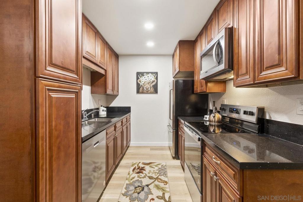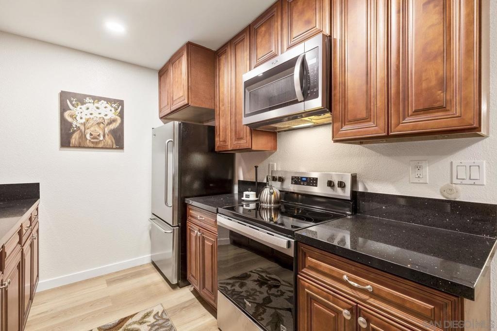 Completely remodeled 1BR/1BA condo in The Grove, Carlsbad! Stylish updates include new LVP flooring, contemporary paint, baseboards, upgraded lighting, and a private balcony. Kitchen features stainless steel appliances and modern finishes. Spacious bedroom and updated bath. Located in a prime street parking location for added convenience. The Grove offers pool, spa, tennis courts, and lush landscaping. Minutes to Carlsbad beaches, shopping, dining, and top-rated schools. Turn-key and move-in ready!