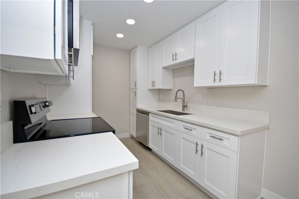 Incredible opportunity to own this completely remodeled home in the highly sought Old Carsbad area in this gated community of The Grove. New kitchen, 2 new bathrooms, new flooring, new paint, new fixtures. Located on the entry level, via bridge from the covered parking. New kitchen remodel has all new cabinetry, counters, fixtures, plumbing and appliances. New paint and new flooring throughout the entire home. Spacious living room open to the dining area and kitchen. In unit laundry and newly remodeled bathroom which serves the second bedroom and guests. Both bedrooms have dual closets. Primary bedroom is very roomy and features a massive walk in closet and private bath. Balcony patio with sliding door access from living room and secondary bedroom! Home has 2 covered parking spaces and private, locked storage space. Gated community has clubhouse, tennis courts, pool, spa, access to hiking trails at Hosp Grove park, plenty of pet relief areas and is walking distance to mall, movie theaters, shopping and more. Only 2 miles to the ocean, it has quick easy access to Highways 78 and the 5.