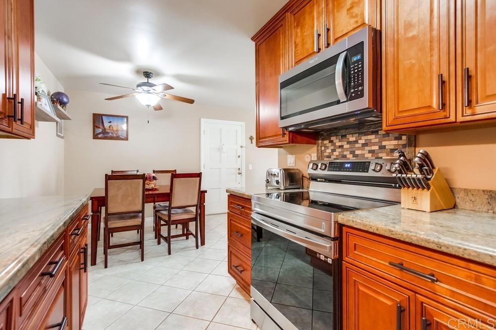 Location, location, location! Gated community less than 3 miles from the beach, highly sought after 2 bedroom 2 full bathroom condo with washer and dryer in the community of The Grove in Carlsbad, CA. Approved for VA financing. The vibrant vinyl wood and tile flooring will take you effortlessly throughout this functional floor-plan. The kitchen is upgraded with a brand-new stainless-steel dishwasher and stove that has smart capabilities and an oven plus built-in air fryer, granite counters and sophisticated oak-colored cabinets. The dining area looks on to the living room that opens at the glass doors to a patio. The primary suite is oversized with room for a sitting area or small office plus two closets, one that is a very large walk-in plus an ensuite bathroom. The 2nd bedroom is also spacious with 2 closets and a sliding glass door that leads to the balcony. Two assigned parking garage locations plus a guest pass. All appliances will stay with the property. Take advantage of the master planned community that offers a heated pool plus spa, BBQ area, a clubhouse and tennis courts. Additionally the monthly fee covers water, sewer, trash and roof maintenance. Convenience in location with easy access to the 78 and 5 freeway, walking distance to the Carlsbad Mall and theater, surrounded by tons of restaurants, grocery and convenient stores plus enjoy the great outdoors with hikes including the Hosp Grove Park just blocks away, world class beaches just walking or biking distance and all that the coastal Carlsbad lifestyle offers.