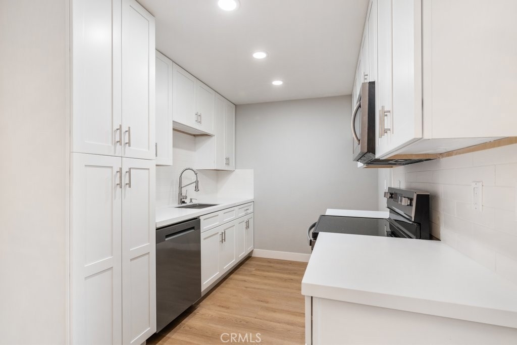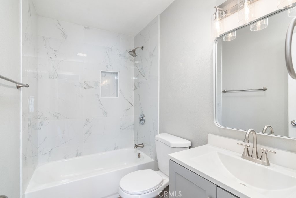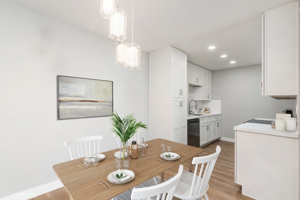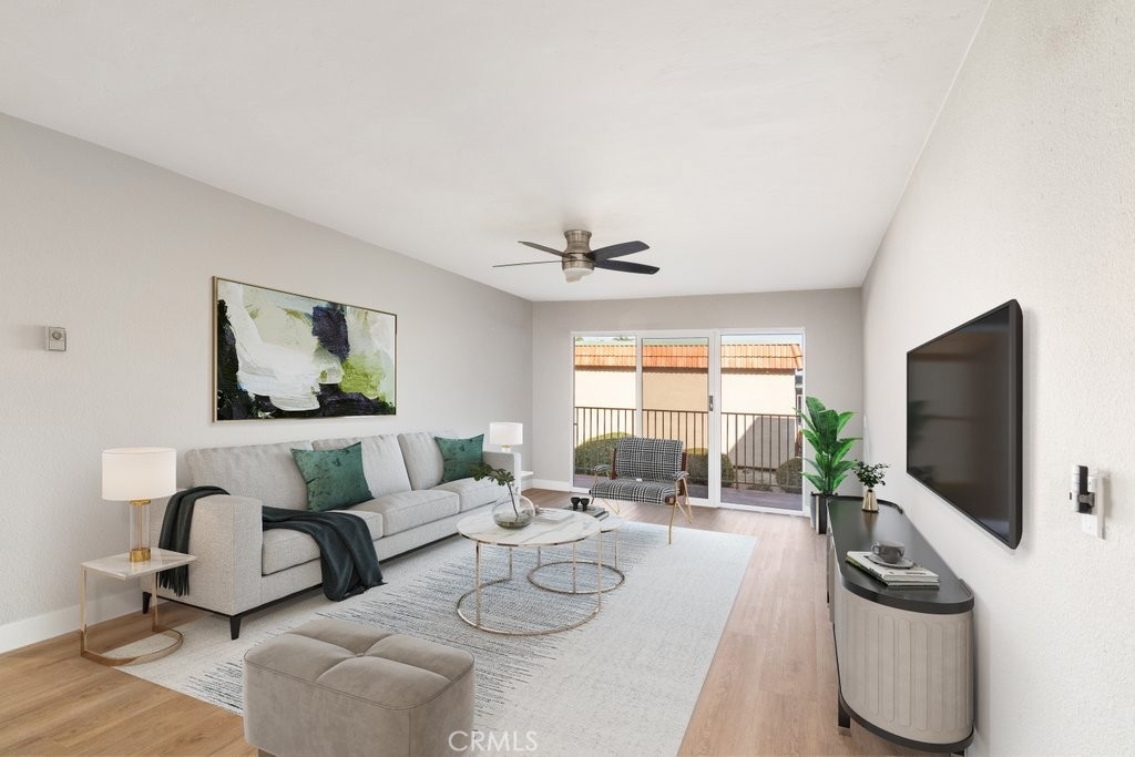 remodeled condo at The Grove with ground level entry but a second story unit. LAUNDRY HOOK UPS INSIDE THE UNIT and easy freeway access from the gated community with 2 covered parking spots, tennis courts, pool/spa and a small storage area. New LVP flooring and moldings throughout the condo with a full kitchen and bathroom remodel. Heavy duty security screens attached to each slider. This affordable condo is ready for a buyer to move in today.
