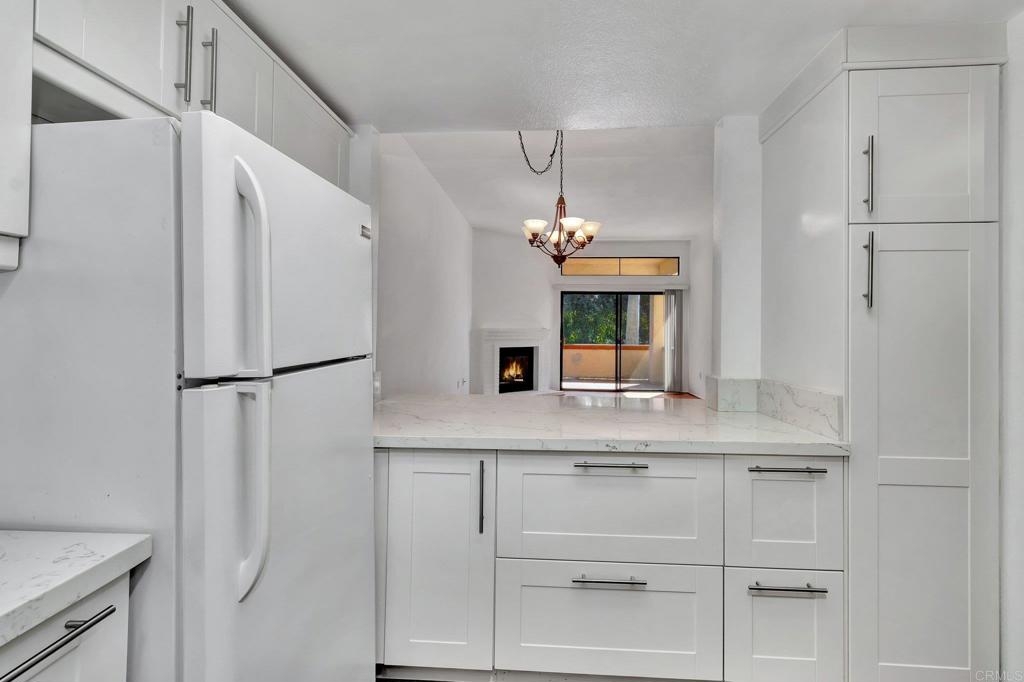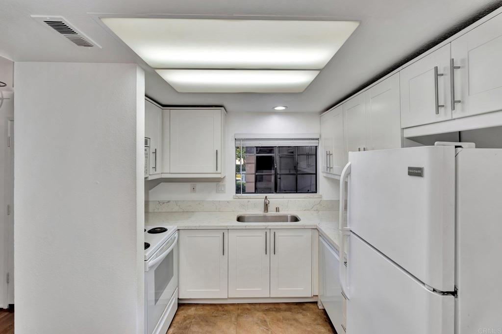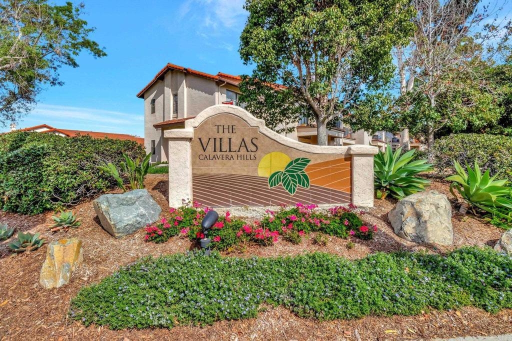 Welcome to this single level with 9' foot high ceilings end unit residence in the highly coveted Calavera Hills 'Villas' community. This well maintained home, boasting 1362 square feet of living space, stands as a testament to pride of ownership and timeless design. Built in 1985, this three-bedroom, two-bathroom gem is a first-floor unit offering both comfort and style. Step into a spacious 1362 square foot abode featuring remodeled white kitchen, new carpet and vinyl wood surfaces. Volume ceilings with extra windows. The gas fireplace adds an elegant touch to the interior. The large primary suite, complete with a walk-in closet, enhances the allure of this thoughtfully designed home. The meticulous care and attention to detail evident throughout make this property a true standout. Convenience and security are paramount, with a one-car garage, locking storage room plus an additional designated parking space provided. Residents can relish the ease of proximity to Hope Elementary and Calavera Park, capitalizing on the prime location off Carlsbad Village Drive near College Blvd. Quick access to shopping, dining, community resources, and highway 78 further elevates the overall lifestyle appeal. Community amenities include a pool and spa, offering residents a delightful retreat within the comforts of home. The proximity to Carlsbad's Calavera Hills regional park ensures access to tennis, an indoor gym, baseball fields, playground, and picnic areas. Outdoor enthusiasts will appreciate the nearby hiking and recreation trails at Calavera Hill, as well as the serene lake. For those with canine companions, dog parks and recreation trails are easily accessible, complementing the family-friendly atmosphere. Outstanding schools in the vicinity (Hope Elementary, Calavera Middle, Sage Creek/Carlsbad HS) contribute to the desirability of this location. Seize the opportunity to make this meticulously crafted residence in Calavera Hills your new home, where comfort, convenience, and a vibrant community converge.