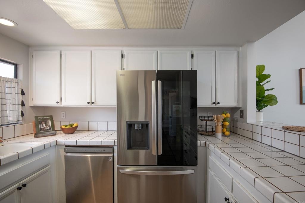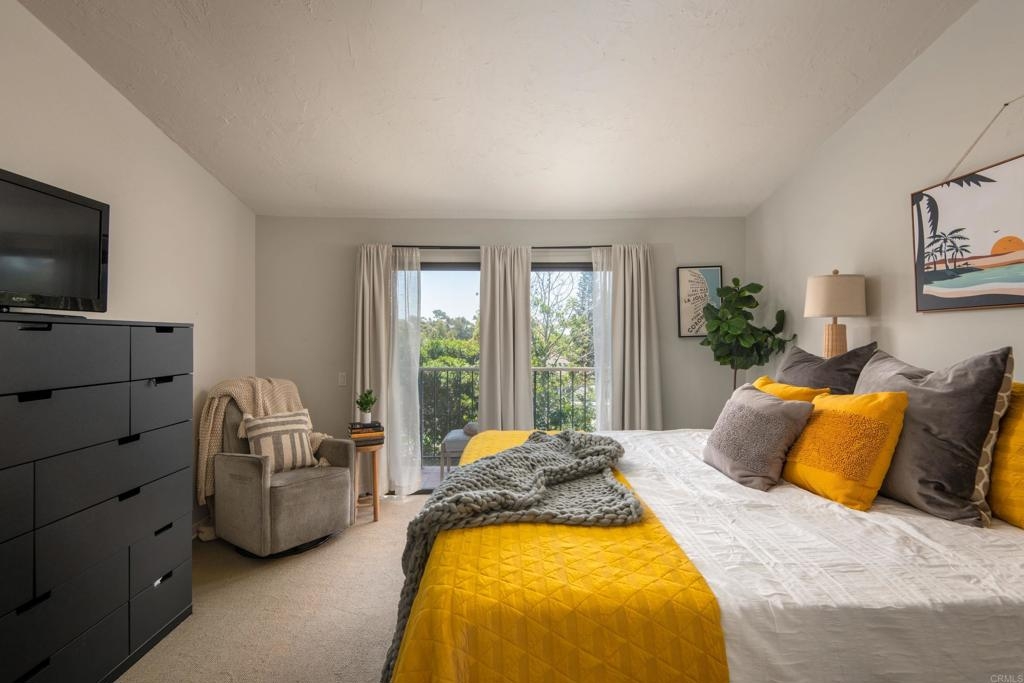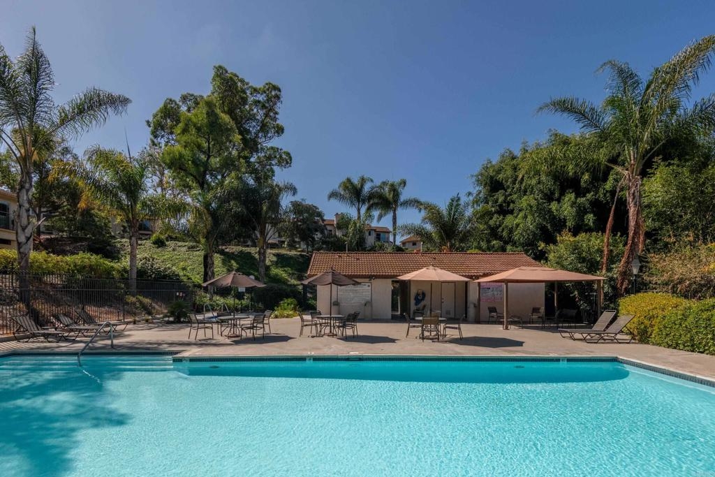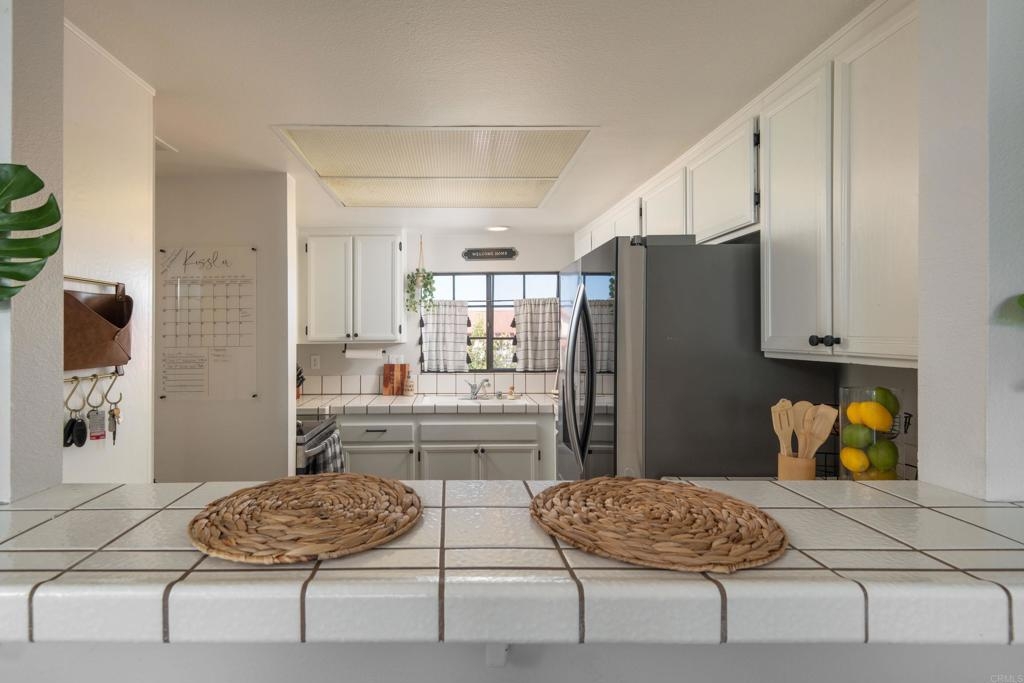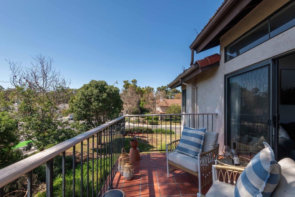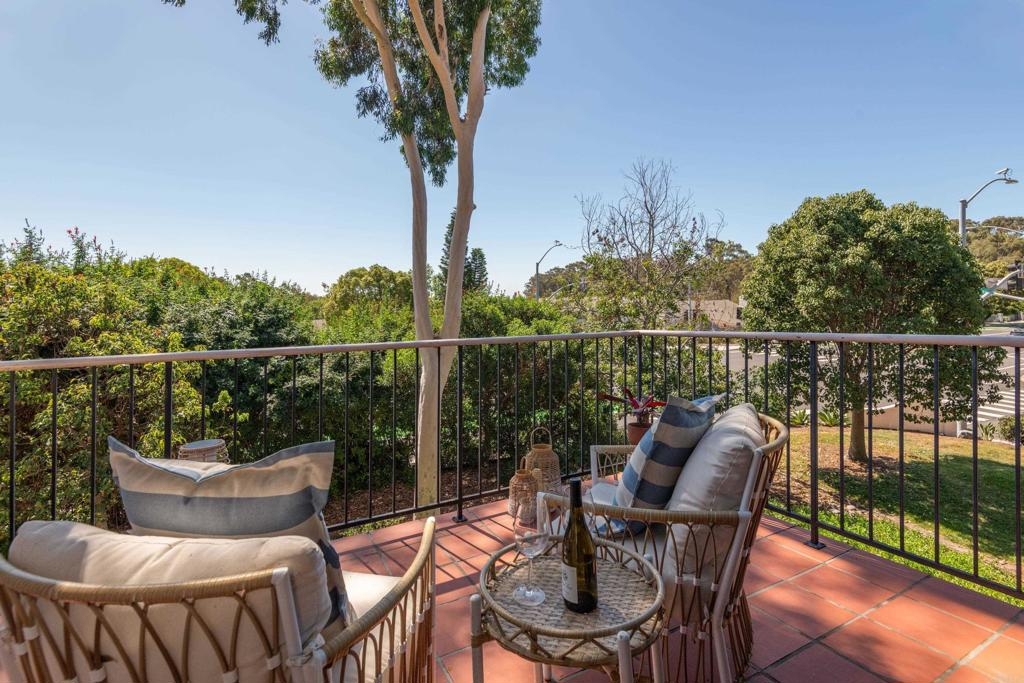 Welcome to beautiful, family-friendly Calavera Hills! This 3-bedroom, 2-bath top-floor end-unit offers privacy and unobstructed views of the landscape. Step inside this spacious and light filled 1,362 square foot condo that boasts new flooring and paint. The open floor plan and vaulted ceilings create an expansive space in the living and dining room. Private patios off the living room and primary bedroom provide the perfect space to enjoy Carlsbad's year-round weather. In the kitchen are all new, modern stainless steel appliances (one year old). The large primary bedroom has an en-suite bathroom, vaulted ceilings, a walk-in closet, and a bonus closet. The additional two bedrooms provide living space and options for a home office. Tucked discreetly behind shutter doors is the new, in-unit washer and dryer. The condo includes a detached one-car garage as well as one assigned parking spot next to the garage and condo. Ownership includes access to the community pool and spa. Nearby is Calavera Park offering sports fields, basketball courts, tennis and pickleball courts, an inside gym and more. The condo is located in the Carlsbad School District.