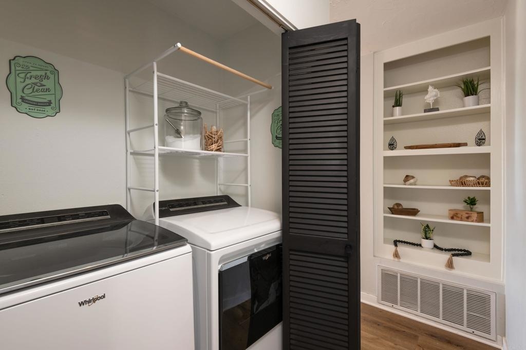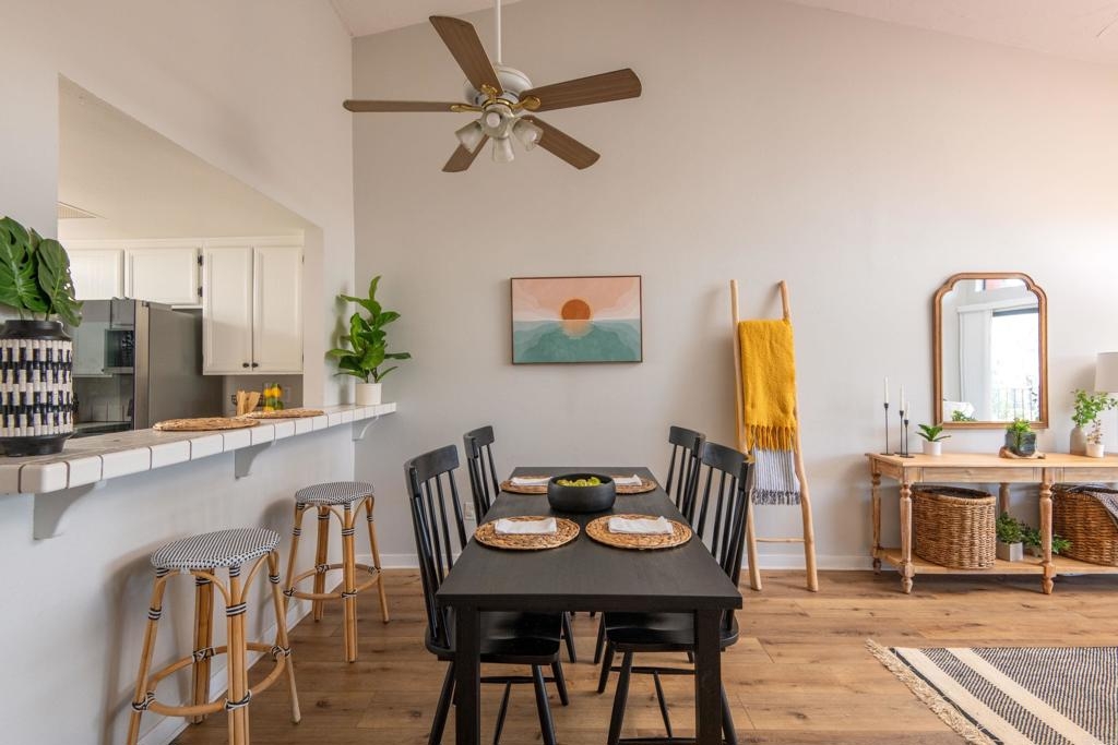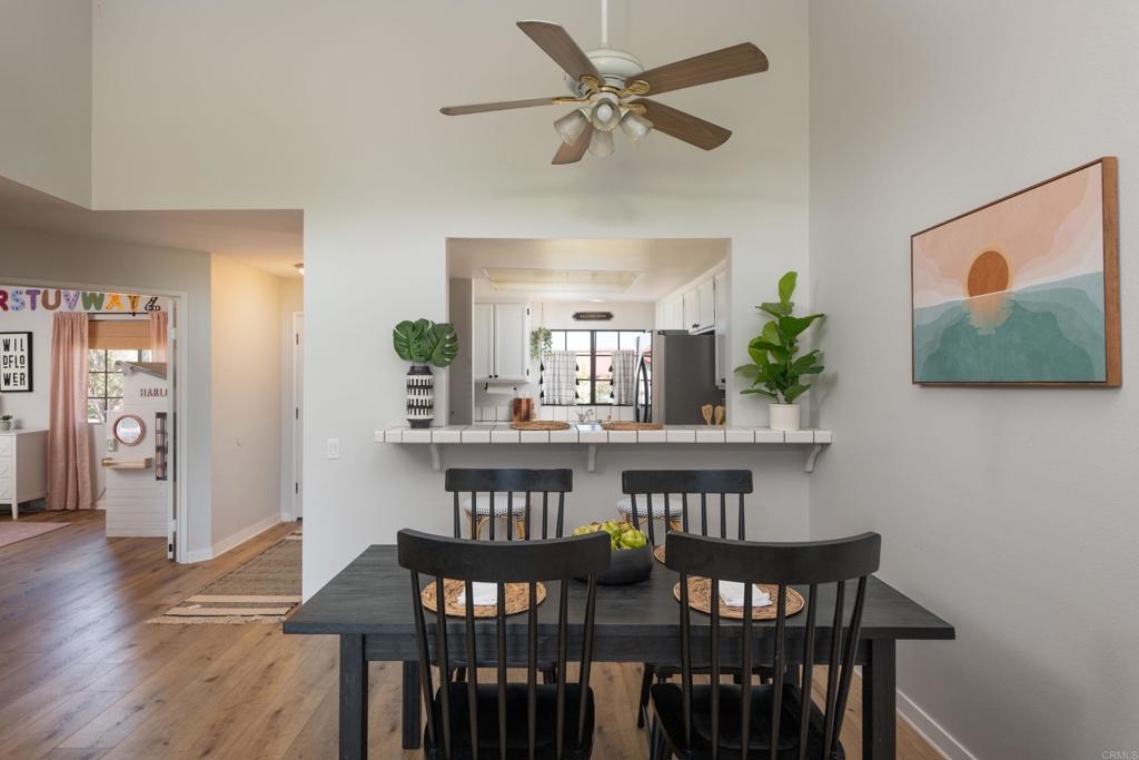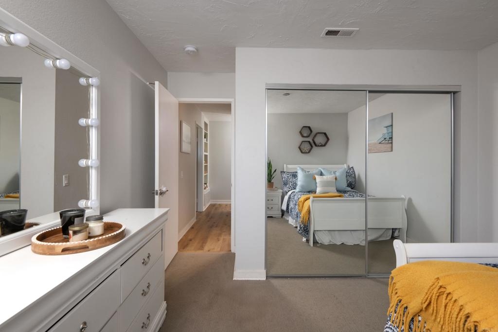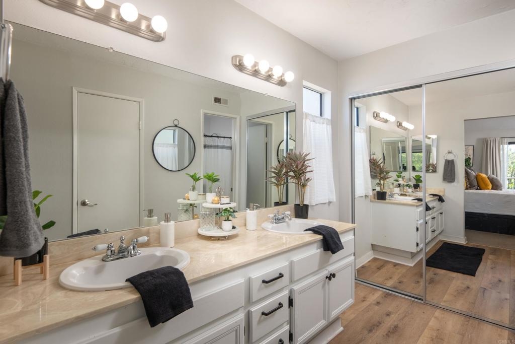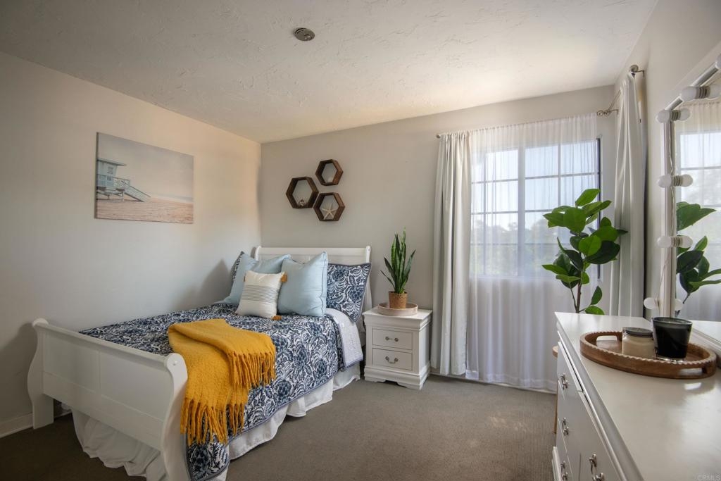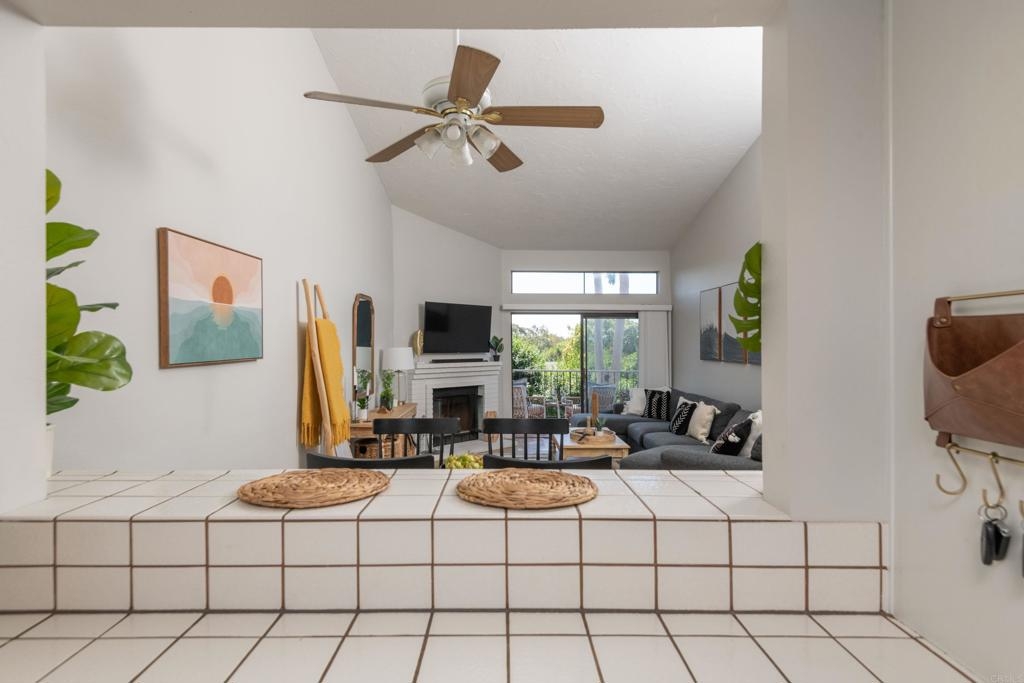Welcome to beautiful, family-friendly Calavera Hills! This 3-bedroom, 2-bath top-floor end-unit offers privacy and unobstructed views of the landscape. Step inside this spacious and light filled 1,362 square foot condo that boasts new flooring and paint. The open floor plan and vaulted ceilings create an expansive space in the living and dining room. Private patios off the living room and primary bedroom provide the perfect space to enjoy Carlsbad's year-round weather. In the kitchen are all new, modern stainless steel appliances (one year old). The large primary bedroom has an en-suite bathroom, vaulted ceilings, a walk-in closet, and a bonus closet. The additional two bedrooms provide living space and options for a home office. Tucked discreetly behind shutter doors is the new, in-unit washer and dryer. The condo includes a detached one-car garage as well as one assigned parking spot next to the garage and condo. Ownership includes access to the community pool and spa. Nearby is Calavera Park offering sports fields, basketball courts, tennis and pickleball courts, an inside gym and more. The condo is located in the Carlsbad School District.