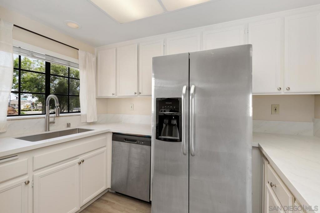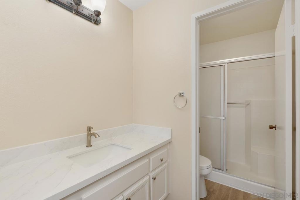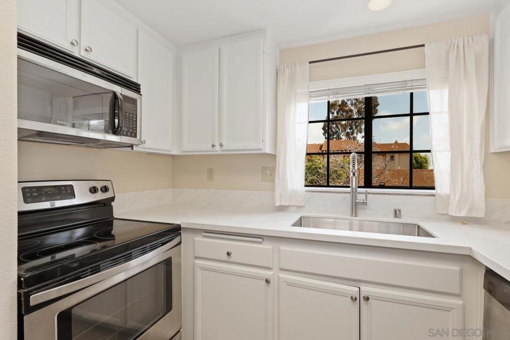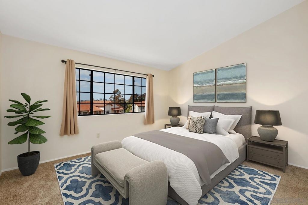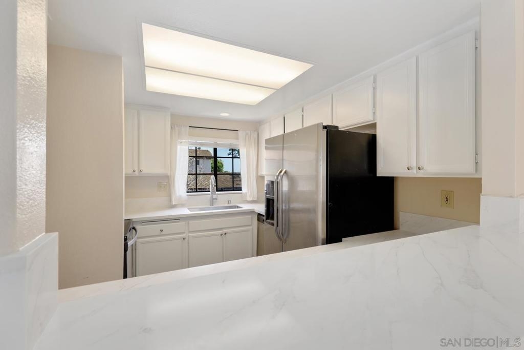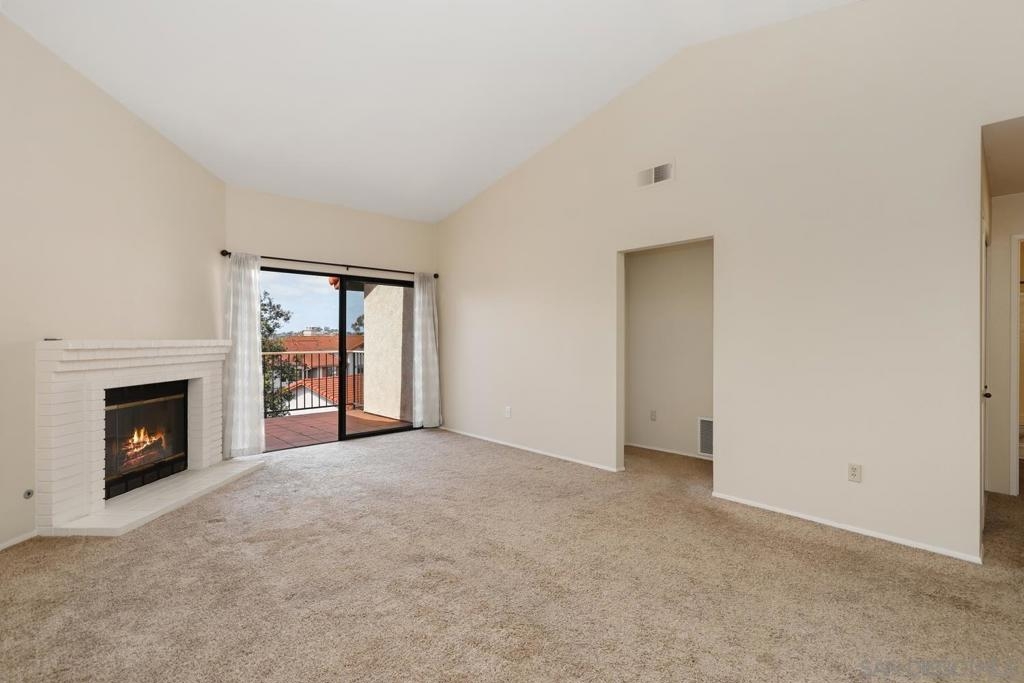 Discover an incredible opportunity to own a spacious two-bedroom, two-bathroom condo in the highly desirable community of Carlsbad. This top-floor unit has been freshly painted and thoughtfully upgraded, offering a bright and welcoming atmosphere from the moment you step inside. Enjoy soaring vaulted and high ceilings throughout the home, creating an airy, open feel complemented by peaceful views from the back of the unit. The inviting living room features a cozy fireplace and sliding glass doors that open to your own private balcony—perfect for morning coffee or relaxing in the evening. The kitchen is both functional and stylish, showcasing freshly painted white cabinetry and sleek quartz countertops. Both bathrooms have been beautifully updated with sparkling white quartz surfaces, adding a touch of luxury to your everyday routine. With a detached garage and an additional parking spot, you'll have plenty of storage and convenience. Located close to parks, popular restaurants and shops.