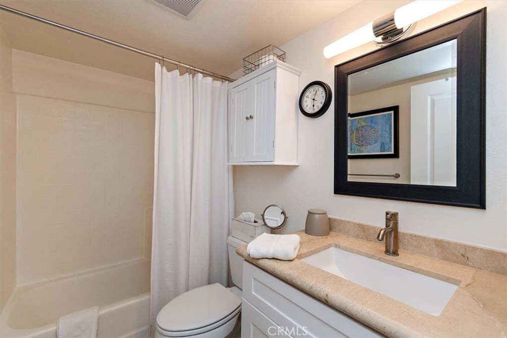 Fantastic Carlsbad location Less than 3 miles from the village of Carlsbad and 3 miles to beautiful California shoreline. Remodeled 3 bedroom 2 bathroom 1362 sf down stairs End Unit with no rear neighbors Upgrades include new windows and window coverings, all new interior doors & door jams, new luxury vinyl plank flooring, updated baseboards throughout. New backsplash & microwave in updated kitchen, new vanities in both bathrooms along with new exhaust fans. Freshly painted walls, ceilings and trim throughout the entire condominium. The well appointed kitchen features an opening overlooking the family room so you will be included and not miss out on anything while preparing meals. The counters are granite, All Appliances are stainless including stove, dishwasher, microwave and refrigerator The dining area and Family room are adjacent to the kitchen including ceiling fan gas fireplace and sliding door to the second patio The laundry is in the hallway and washer an dryer are included , Private primary suite features sliding door to covered patio two generous closets and Duel sink vanity. The two bedrooms have large closets along with luxury vinyl flooring that matches home flooring. HOA fees take care of all ground maintenance water sewer and trash along with community pool and hot tub. Your Single Bay garage is right outside front door with additional assigned parking spot next to entrance of the home. Garage has locked storage room that is a generous size. Complex has abundant guest parking. In 2021 water pipes that had previously been located in the slab were removed and rerouted