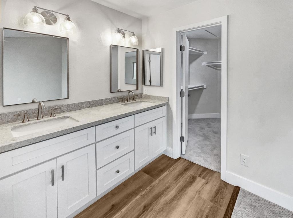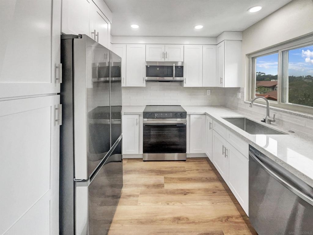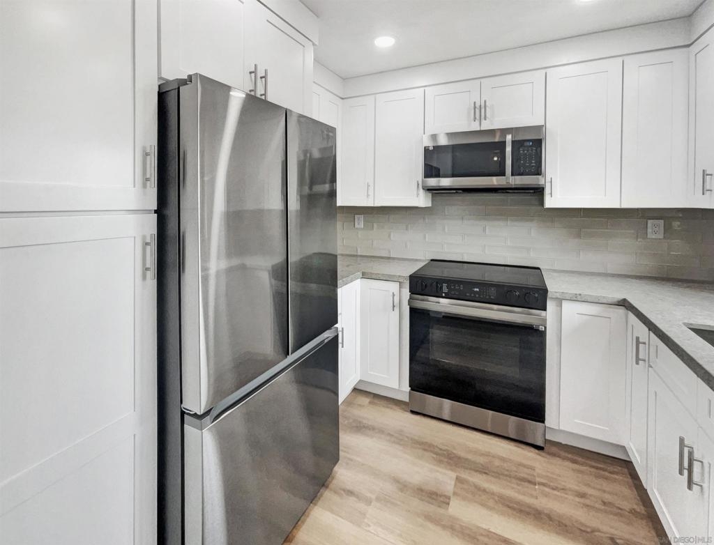Welcome to your dream home, where modern style meets timeless comfort. Relax by the beautifully designed fireplace in the living area, perfect for cozy evenings. The rooms feature a fresh neutral paint scheme, ready for your personal touch. The remodeled kitchen boasts sleek stainless steel appliances and a stylish accent backsplash, combining functionality with charm. The primary bedroom offers a spacious walk-in closet for all your storage needs. In the primary bathroom, you'll be greeted by a custom tile shower and double sinks to ensure plenty of space for two. The entire interior has been freshly painted, creating a bright and inviting atmosphere. The new flooring throughout adds a modern touch. All appliances are brand new for top performance and style, and you'll have access to shared neighborhood amenities, fostering community engagement and enjoyment of events. Don't miss out on this opportunity to experience modern comfort and style in every detail.