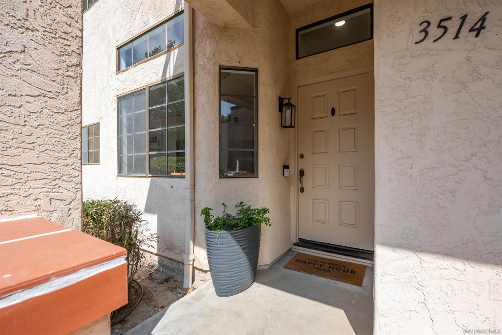 Charming and spacious remodeled condo in the highly desired community of Calavera Hills. Tucked in a corner location with views and privacy.Soaring 10ft ceilings w/ new flooring & paint throughout. Updated kitchen with stainless steel appliances, custom tile backsplash, and granite countertops. Spacious living room with cozy fireplace and slider to outside living. Enjoy the sunrise/sunset views from your large covered patio.Primary bedroom w/ canyon views features a walk-in closet, dual sinks in new vanity. Community has a pool and spa. Water, sewer, trash, and community landscaping are all included in your HOA fees. Great hiking trails, parks, schools, popular restaurants, downtown Carlsbad Village and the beach just minutes away!