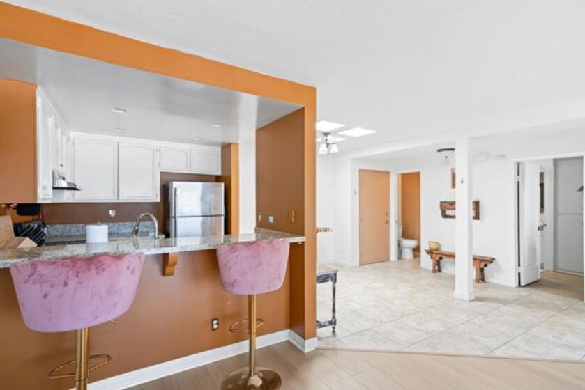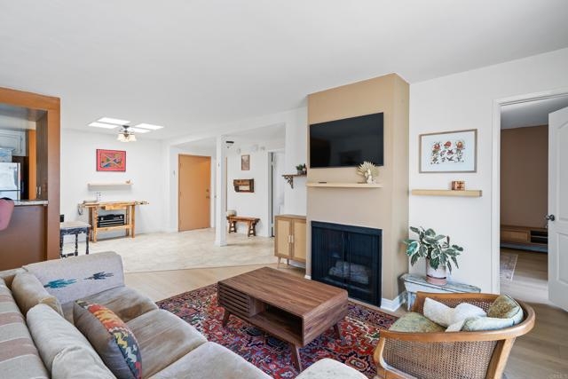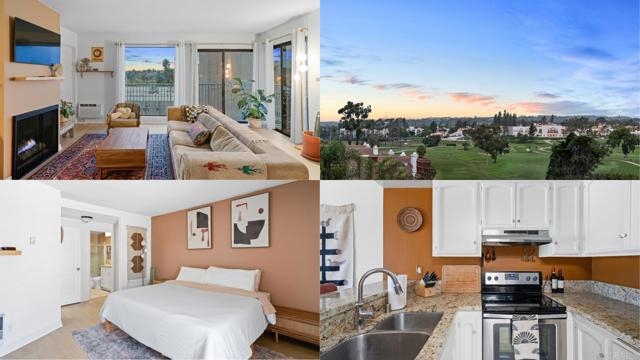 Welcome to this charming 3rd-floor end unit WITH NO UNIT ABOVE condo in highly desirable La Costa and the Tres Verde community, where modern Carlsbad living meets resort-style amenities. This single-level, open floor plan offers breathtaking views of the La Costa Golf Course and overlooks the prestigious Omni La Costa Resort and Spa. Enjoy spectacular sunsets that make every day feel like a vacation, providing a serene retreat after a long day. As a private end unit, this home offers incredible natural light, skylights, tranquility, and quiet. The living area features a cozy fireplace, and brand new luxury plank vinyl flooring enhances the openness, warmth, and style of the space. The home also overlooks the sparkling community pool to the east, adding to the serene vacation-like vibe. The open floor plan is perfect for entertaining, highlighted by dual-pane windows, a charming wet bar, and a new wall air conditioning unit. The kitchen is beautifully designed with stainless steel appliances and a breakfast counter that seamlessly opens into the living room, making it ideal for hosting guests. The spacious primary bedroom features dual closets and an en-suite bathroom with a walk-in shower. An additional bath in the main living space adds convenience for entertaining. This unit includes one assigned space in the underground garage, guest parking, and a large storage unit for your convenience. Community amenities include a pool, spa, and laundry facility, all within a pet-friendly environment. Located in one of the top school districts in San Diego County, this condo is less than five miles from Ponto Carlsbad State Beach, the beautiful Batiquitos Lagoon Hiking Trail, known nationally for bird watching. and within walking distance to golf amenities, Omni Resort & Spa, Gelson’s Market, Equinox Gym, Coffee Coffee, boutiques, restaurants and more! Plus, with a five-minute drive to Interstate 5, this condo is situated in an idyllic location, truly offering an oasis in La Costa.