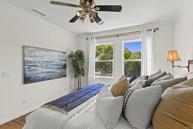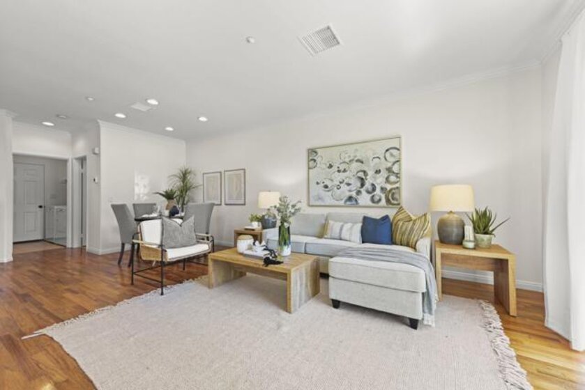 Welcome to your new home in the heart of Carlsbad! This rarely available 3-bedroom, 2.5-bath corner-unit townhome is tucked within the highly sought-after Valencia community of Rancho Carrillo. Freshly painted and filled with natural light, the home boasts an open and airy floorplan with real wood floors throughout both levels. The bright white kitchen features brand-new quartz countertops and opens seamlessly to the living and dining areas—perfect for both everyday living and entertaining. Enjoy the convenience of an attached 2-car garage with plenty of space for parking and storage, and stay cool year-round with a brand-new AC system. Step outside to your own sun-drenched patio, or take advantage of fantastic community amenities just steps away—including a sparkling saltwater pool, spa, BBQ area, and exclusive access to the Rancho Carrillo Swim Center. Reserved for residents and their guests, the Swim Center features a 57-foot year-round heated pool and spa. The neighborhood is full of charm and activity—don’t miss nearby Leo Carrillo Ranch Historic Park, where peacocks freely roam, or explore scenic Rancho Carrillo trails that are perfect for walking, running, cycling + pet friendly. Families also love nearby Alga Norte Park with its sports fields, skate park, playgrounds, and community swim center. Best of all, this home is just minutes from Bressi Ranch shopping and dining—including Carlsbad’s only Trader Joe’s—plus top-rated schools, sandy beaches, and major tech employers. Priced below recent sales, this move-in-ready home is a rare opportunity in one of North County’s most desirable neighborhoods.