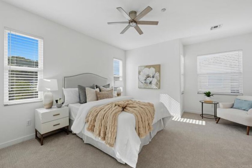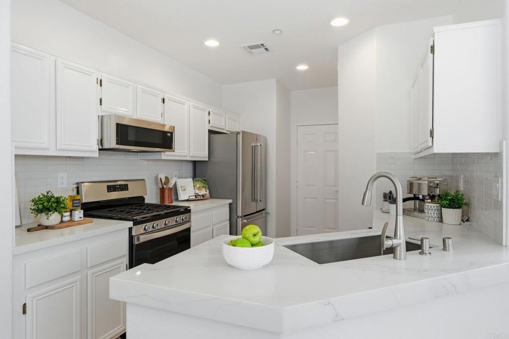 Come see this rare End Unit in Rancho Carrillo’s Valencia community, one of Carlsbad’s most desirable neighborhoods! Freshly remodeled & move-in ready, this 2 bedroom 2.5 bathroom home offers privacy, serenity and ample light pouring in from every angle. Tucked away in a premium location in the neighborhood, this home is close to everything that makes North County living so special. Inside you’ll find a warm and inviting living space with a fireplace, oversized private patio, and a fully remodeled kitchen with brand new top-of-the-line-appliances, and a bathroom on the main level. Upstairs, the primary suite offers a serene retreat with a walk-in closet, private bathroom and abundant natural light. The second bedroom features a full ensuite bathroom and private balcony. Amazing additional features include brand-new washer and dryer, new water heater, fresh paint throughout, brand new laminate flooring and carpet, brand new KitchenAid refrigerator, Whirlpool low profile microwave, Bertazzoni dishwasher, Vadara quartz countertops, Sartoria tile kitchen backsplash, Ferguson fixtures, sinks, one piece toilets and new replacement glass on most windows. This gorgeous home is complete with an attached 2-car garage with ample storage and a window. Living here means being part of a vibrant community designed for both relaxation and recreation. The Valencia Community offers a saltwater pool and spa, with BBQ and tot lot. Residents also have access to the exclusive Rancho Carrillo Swim Center and Clubhouse. Stroll the scenic hiking and biking trails that wind through Rancho Carrillo, spend weekends at the pristine community pool and spa, or enjoy afternoons at the nearby 27-acre Leo Carrillo Historic Ranch Park. Enjoy the neighborhood’s top-rated schools, and if you’re a dog owner, you will love Alga Norte’s community dog park just minutes away. When it’s time for shopping, dining, or entertainment, you’re a short drive to the buzzing Bressi Ranch Square with its trendy eateries and boutiques. Carlsbad’s renowned beaches, Legoland, and outlet shopping are also close by, making it easy to enjoy the best of the coastal lifestyle. If you’re looking for more than just a home, but a neighborhood that truly enriches your lifestyle, this Valencia residence in Rancho Carrillo delivers it all.